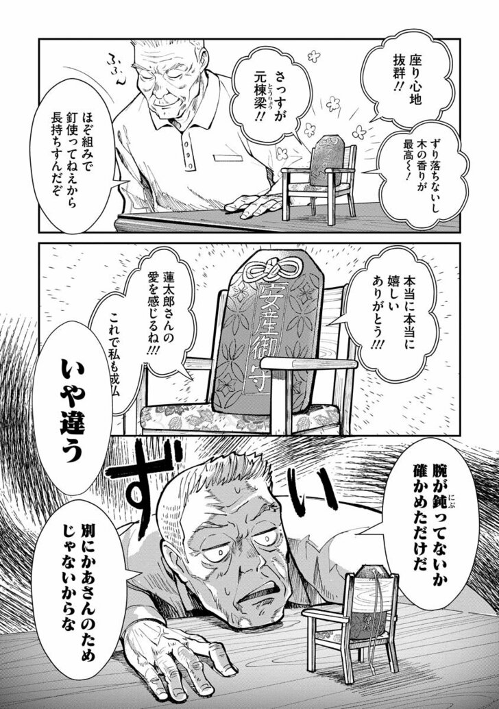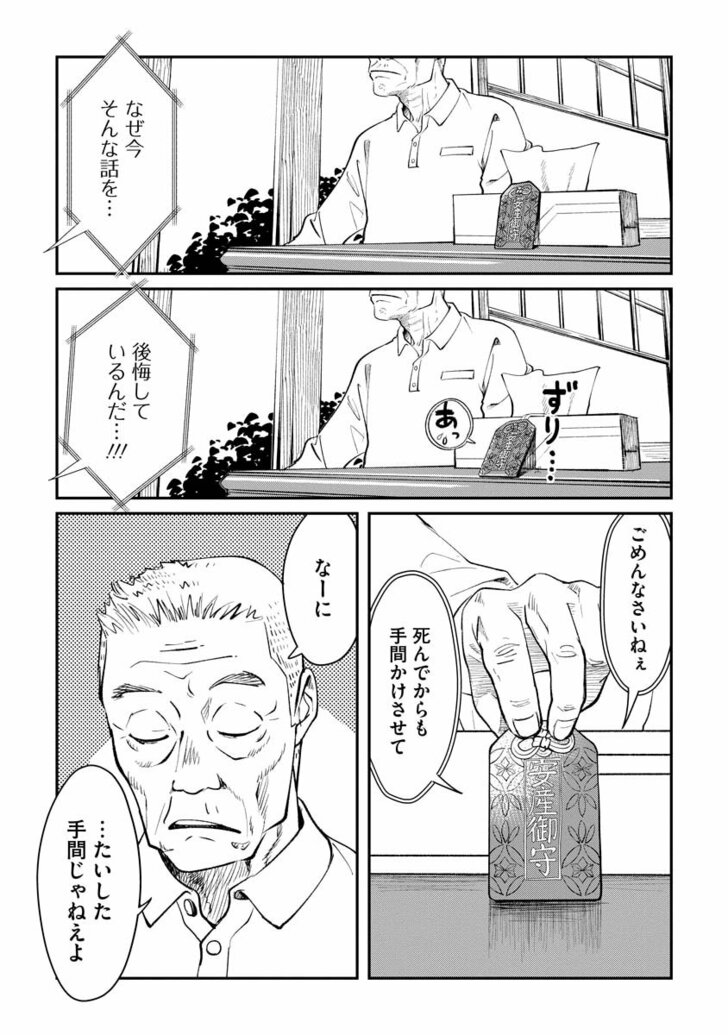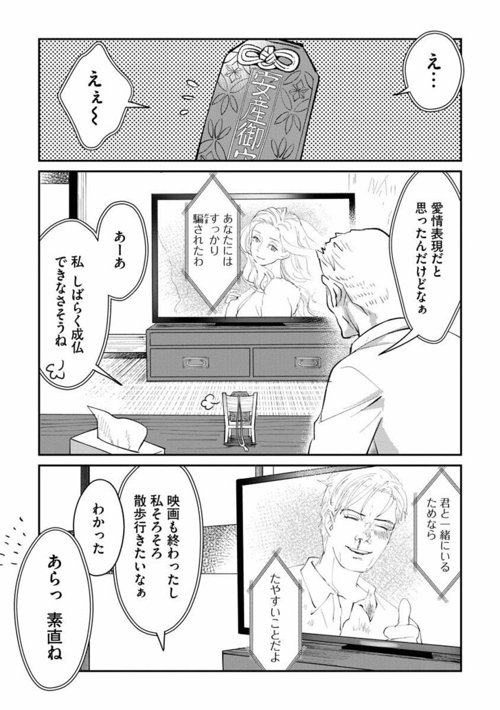 漫画 【無料漫画】妻がお守りになって夫の元に帰ってきた理由とは!?『お守り女房』 #無料漫画 山口カエ 2023.08.17 『お守り女房』山口カエ 死んでもいっしょ。 亡くなった妻が「安産祈願」のお守り姿で帰ってきた…。元大工の伊豆沼蓮太郎(83歳)とその妻(お守り)による新生活コメディ!姿形は変わっても、夫婦の愛は変わらない!! やまぐちかえ 山口カエ イラストレーターの傍らtwitterに漫画を掲載中。 Twitter:@yamakae ポスト シェア LINEで送る