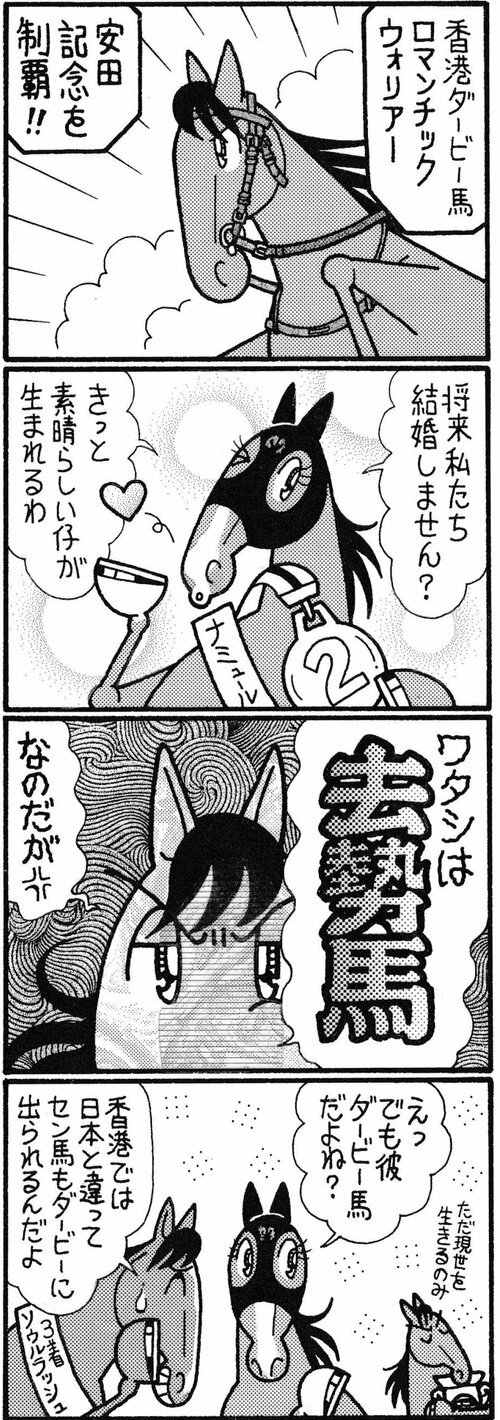 漫画 【無料漫画】競馬4コマ『馬なりde SHOW』国によってルールは違う! #よしだみほ #漫画(マンガ) #4コマ漫画 #無料漫画 よしだみほ 2024.06.10 よしだみほ よしだみほ 『週刊大衆』連載中「馬なり de SHOW」と、netkeiba.com連載中「馬なり1ハロン!NEO」からの特選回、さらに描き下ろし4ページマンガ「VIP Party 2020」を収録した記念冊子【馬なりミニハロン劇場】を双葉社ECサイト上で発売中!歴史的な出来事が多かった2020年競馬界を、この1冊で振り返りましょう! よしだみほ よしだみほ 馬と舞台演劇を愛する競馬マンガ家。 趣味は観劇(俳優:鹿賀丈史・滝田栄推し)&キャラ惚れベースの日本史研究。 好物はお寿司とデコポン。 ポスト シェア LINEで送る