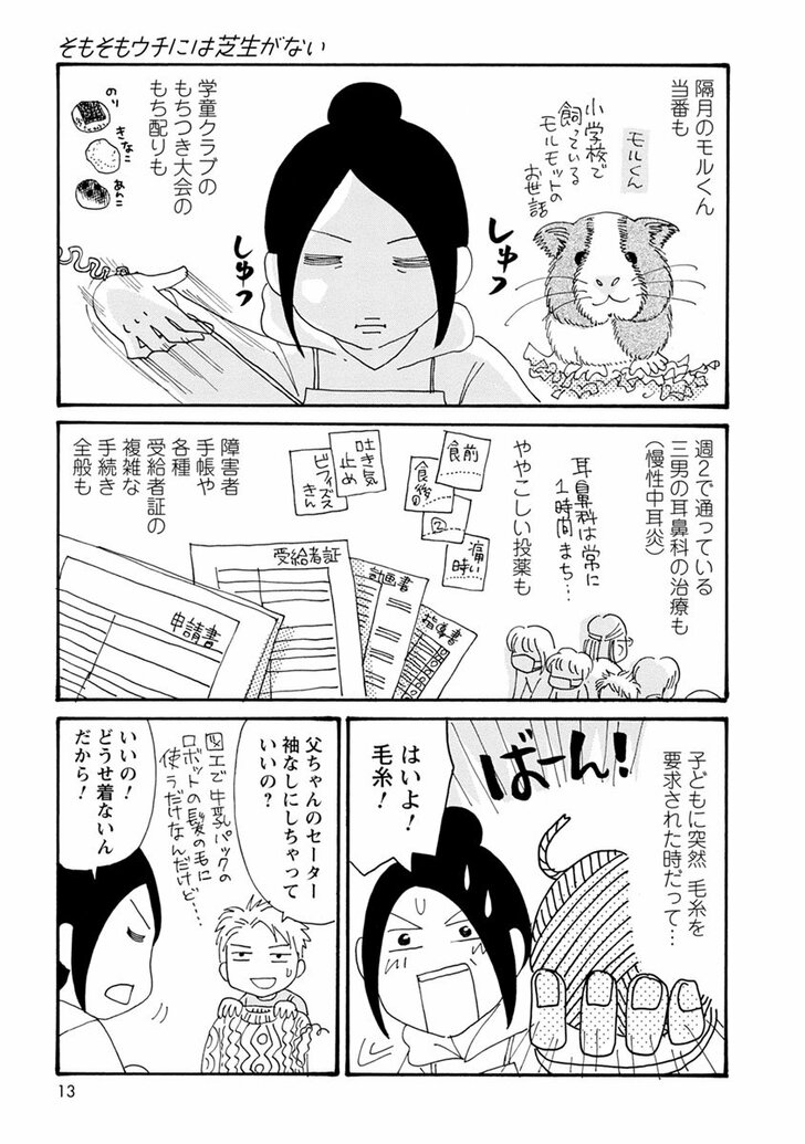 漫画 【無料漫画】『そもそもウチには芝生がない』第1話「3児の育児と仕事に追われる毎日…旦那はどこよ!?」たちばなかおる (2/2ページ) 1ページ目から読む #無料漫画 #そもそもウチには芝生がない たちばなかおる 2024.10.11 電子コミックス第1巻 電子コミックス最新刊13巻 ■無料で読める最新漫画はこちら 【漫画】地味で陰キャのアラサー女子、誰にも言えない「夜の素顔」 【漫画】マシュマロボディの「天使」とツンデレ美少女「悪魔」、疲れを癒してくれるならどっち? 【漫画】死ぬまで妻一筋のはずが…中年男が壊れた「年下同僚との一夜」 【漫画】親が勝手に決めた婚約者は…17歳の現役高校生!しかもいきなり同棲させられて……!? 【漫画】リーマンもホストもハマる…「午前中しか味わえない」至福のおとこメシ 続きはこちら! 1 2 たちばなかおる たちばなかおる 12月14日生まれのA型、東京都出身。 主な著作『九後45は一周回って追いかける』『長男・次男・三男・夫よ 早く大人になってくれ!!(震え声)』『ユンタのゆっくり成長記』など。 無料漫画『そもそもウチには芝生がない』 【無料漫画】『そもそもウチには芝生がない』“住む世界が違いすぎる”アラフォー女性がPTAで痛感したギャップとは? 【無料漫画】『そもそもウチには芝生がない』第2話「アラフォー女性が“イタさ”に気づく瞬間…?」たちばなかおる 【無料漫画】『そもそもウチには芝生がない』第3話「同居姑の“エグイひと言”に感情が大爆発…!?」たちばなかおる 【無料漫画】『そもそもウチには芝生がない』第4話「年下男子との出会いは恋の予感!?」たちばなかおる 【無料漫画】『そもそもウチには芝生がない』第5話「40代から“いい女”ってなれますか…!?」たちばなかおる 【無料漫画】『そもそもウチには芝生がない』第6話「“不完全な関係”が夫婦円満のヒケツ…!?」たちばなかおる 【無料漫画】『そもそもウチには芝生がない』第7話「年下男の“愛情表現”に10年ぶりの胸キュン!?」たちばなかおる 【無料漫画】『そもそもウチには芝生がない』第8話「ダンナの“浮気段階”を見抜く方法とは…?」たちばなかおる 【無料漫画】『そもそもウチには芝生がない』第9話「念願プロポーズは“親同居付き”…さぁどうする!? 」たちばなかおる 【無料漫画】『そもそもウチには芝生がない』第10話「アラフォーでも“妊娠”で喜んでいいですか…!?」たちばなかおる 【無料漫画】『そもそもウチには芝生がない』第11話「男女がルームメイトって“アリ”ですか…!?」たちばなかおる 【無料漫画】『そもそもウチには芝生がない』第12話「年下男の靴下にイライラしちゃう理由とは…!?」たちばなかおる 【無料漫画】『そもそもウチには芝生がない』第13話「アラフォー女子が転機で下した“大決断”」たちばなかおる 【無料漫画】『そもそもウチには芝生がない』第14話「アラフォー女子が“優しさ”で涙をこぼす時…」たちばなかおる 【無料漫画】『そもそもウチには芝生がない』第15話「恐怖!?“マウンティング女子”の実態とは…」たちばなかおる 【無料漫画】『そもそもウチには芝生がない』第16話「やさしいママがいきなり情緒不安定に…!?」たちばなかおる 【無料漫画】『そもそもウチには芝生がない』第17話「同世代の友達が“若返って見える”瞬間って…?」たちばなかおる 【無料漫画】『そもそもウチには芝生がない』第18話「人生で味わえる一番の痛み」たちばなかおる 【無料漫画】『そもそもウチには芝生がない』第19話「思ってたより痛い!? 40代出産のリアル…」たちばなかおる 【無料漫画】『そもそもウチには芝生がない』第20話「出産直後にイラッとくる“夫の地雷発言”」たちばなかおる 【無料漫画】『そもそもウチには芝生がない』第21話「新米ママが怯える…“子育てのピーク”っていつよ!」たちばなかおる 【無料漫画】『そもそもウチには芝生がない』第22話「既読スルーに“他の女の影”を感じる瞬間って…!?」たちばなかおる 【無料漫画】『そもそもウチには芝生がない』第23話「40女の大失恋…号泣以外の傷心ケアって?」たちばなかおる 【無料漫画】『そもそもウチには芝生がない』第24話「ダンナは“人生で一番好きな人”じゃない…!?」たちばなかおる 【無料漫画】『そもそもウチには芝生がない』第25話「カレに“運命”を感じる瞬間って…?」たちばなかおる 【無料漫画】『そもそもウチには芝生がない』第26話「元カレからメールって、どう返すのが正解なの…!?」たちばなかおる 【無料漫画】『そもそもウチには芝生がない』第27話「思い出の元カレから突然のお誘い…どうする!?」たちばなかおる 【無料漫画】『そもそもウチには芝生がない』第28話「若い頃の元カレが超イケオジ化してたら…?」たちばなかおる 【無料漫画】『そもそもウチには芝生がない』第29話「元彼の衝撃告白に…涙腺崩壊!」たちばなかおる 【無料漫画】『そもそもウチには芝生がない』第30話「アラフォー女が20代女子