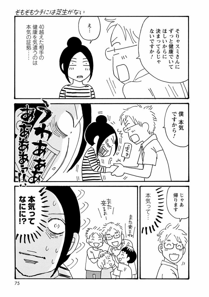 漫画 【無料漫画】『そもそもウチには芝生がない』第7話「年下男の“愛情表現”に10年ぶりの胸キュン!?」たちばなかおる (2/2ページ) 1ページ目から読む #無料漫画 #そもそもウチには芝生がない たちばなかおる 2024.10.25 ■『そもそもウチには芝生がない』過去回はこちらから読めます!■ 電子コミックス第1巻 電子コミックス最新刊13巻 ■無料で読める最新漫画はこちら 【漫画】食べれば人生が変わる「魔法メシ」…絶品からあげが「激ウマすぎる理由」とは 【漫画】あの頃の風景が今の自分を癒してくれる…心があったまる「昭和ドラマ」 【漫画】ママ友たちの壮絶「マウント合戦」…PTA活動の場はまさに「戦場」だった!? 【漫画】死ぬまで妻一筋のはずが…中年男が壊れた「年下同僚との一夜」 【漫画】リーマンもホストもハマる…「午前中しか味わえない」至福のおとこメシ 続きはこちら! 1 2 たちばなかおる たちばなかおる 12月14日生まれのA型、東京都出身。 主な著作『九後45は一周回って追いかける』『長男・次男・三男・夫よ 早く大人になってくれ!!(震え声)』『ユンタのゆっくり成長記』など。 無料漫画『そもそもウチには芝生がない』 【無料漫画】『そもそもウチには芝生がない』“住む世界が違いすぎる”アラフォー女性がPTAで痛感したギャップとは? 【無料漫画】『そもそもウチには芝生がない』第1話「3児の育児と仕事に追われる毎日…旦那はどこよ!?」たちばなかおる 【無料漫画】『そもそもウチには芝生がない』第2話「アラフォー女性が“イタさ”に気づく瞬間…?」たちばなかおる 【無料漫画】『そもそもウチには芝生がない』第3話「同居姑の“エグイひと言”に感情が大爆発…!?」たちばなかおる 【無料漫画】『そもそもウチには芝生がない』第4話「年下男子との出会いは恋の予感!?」たちばなかおる 【無料漫画】『そもそもウチには芝生がない』第5話「40代から“いい女”ってなれますか…!?」たちばなかおる 【無料漫画】『そもそもウチには芝生がない』第6話「“不完全な関係”が夫婦円満のヒケツ…!?」たちばなかおる 【無料漫画】『そもそもウチには芝生がない』第8話「ダンナの“浮気段階”を見抜く方法とは…?」たちばなかおる 【無料漫画】『そもそもウチには芝生がない』第9話「念願プロポーズは“親同居付き”…さぁどうする!? 」たちばなかおる 【無料漫画】『そもそもウチには芝生がない』第10話「アラフォーでも“妊娠”で喜んでいいですか…!?」たちばなかおる 【無料漫画】『そもそもウチには芝生がない』第11話「男女がルームメイトって“アリ”ですか…!?」たちばなかおる 【無料漫画】『そもそもウチには芝生がない』第12話「年下男の靴下にイライラしちゃう理由とは…!?」たちばなかおる 【無料漫画】『そもそもウチには芝生がない』第13話「アラフォー女子が転機で下した“大決断”」たちばなかおる 【無料漫画】『そもそもウチには芝生がない』第14話「アラフォー女子が“優しさ”で涙をこぼす時…」たちばなかおる 【無料漫画】『そもそもウチには芝生がない』第15話「恐怖!?“マウンティング女子”の実態とは…」たちばなかおる 【無料漫画】『そもそもウチには芝生がない』第16話「やさしいママがいきなり情緒不安定に…!?」たちばなかおる 【無料漫画】『そもそもウチには芝生がない』第17話「同世代の友達が“若返って見える”瞬間って…?」たちばなかおる 【無料漫画】『そもそもウチには芝生がない』第18話「人生で味わえる一番の痛み」たちばなかおる 【無料漫画】『そもそもウチには芝生がない』第19話「思ってたより痛い!? 40代出産のリアル…」たちばなかおる 【無料漫画】『そもそもウチには芝生がない』第20話「出産直後にイラッとくる“夫の地雷発言”」たちばなかおる 【無料漫画】『そもそもウチには芝生がない』第21話「新米ママが怯える…“子育てのピーク”っていつよ!」たちばなかおる 【無料漫画】『そもそもウチには芝生がない』第22話「既読スルーに“他の女の影”を感じる瞬間って…!?」たちばなかおる 【無料漫画】『そもそもウチには芝生がない』第23話「40女の大失恋…号泣以外の傷心ケアって?」たちばなかおる 【無料漫画】『そもそもウチには芝生がない』第24話「ダンナは“人生で一番好きな人”じゃない…!?」たちばなかおる 【無料漫画】『そもそもウチには芝生がない』第25話「カレに“運命”を感じる瞬間って…?」たちばなかおる 【無料漫画】『そもそもウチには芝生がない』第26話「元カレからメールって、どう返すのが正解なの…!?」たちばなかおる 【無料漫画】『そもそもウチには芝生がない』第27話「思い出の元カレから突然のお誘い…どうする!?」たちばなかおる 【無料漫画】『そもそもウチには芝生がない』第28話「若い頃の元カレが超イケオジ化してたら…?」たちばなかおる 【無料漫画】『そもそもウチには芝生がない』第29話「元彼の衝撃告白に…涙腺崩壊!」たちばなかおる 【無料漫画】『