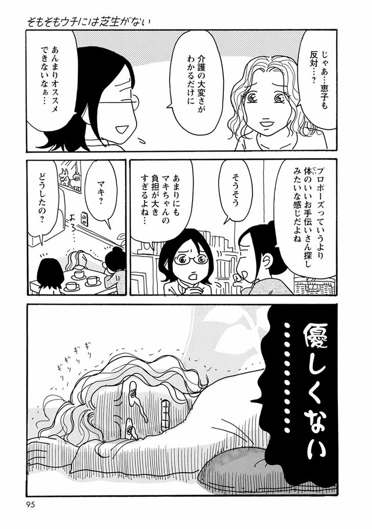 漫画 【無料漫画】『そもそもウチには芝生がない』第9話「念願プロポーズは“親同居付き”…さぁどうする!? 」たちばなかおる (2/2ページ) 1ページ目から読む #無料漫画 #そもそもウチには芝生がない たちばなかおる 2024.11.01 ■『そもそもウチには芝生がない』過去回はこちらから読めます!■ 電子コミックス第1巻 電子コミックス最新刊13巻 ■無料で読める最新漫画はこちら 【漫画】食べれば人生が変わる「魔法メシ」…絶品からあげが「激ウマすぎる理由」とは 【漫画】あの頃の風景が今の自分を癒してくれる…心があったまる「昭和ドラマ」 【漫画】ママ友たちの壮絶「マウント合戦」…PTA活動の場はまさに「戦場」だった!? 【漫画】死ぬまで妻一筋のはずが…中年男が壊れた「年下同僚との一夜」 【漫画】リーマンもホストもハマる…「午前中しか味わえない」至福のおとこメシ 続きはこちら! 1 2 たちばなかおる たちばなかおる 12月14日生まれのA型、東京都出身。 主な著作『九後45は一周回って追いかける』『長男・次男・三男・夫よ 早く大人になってくれ!!(震え声)』『ユンタのゆっくり成長記』など。 無料漫画『そもそもウチには芝生がない』 【無料漫画】『そもそもウチには芝生がない』“住む世界が違いすぎる”アラフォー女性がPTAで痛感したギャップとは? 【無料漫画】『そもそもウチには芝生がない』第1話「3児の育児と仕事に追われる毎日…旦那はどこよ!?」たちばなかおる 【無料漫画】『そもそもウチには芝生がない』第2話「アラフォー女性が“イタさ”に気づく瞬間…?」たちばなかおる 【無料漫画】『そもそもウチには芝生がない』第3話「同居姑の“エグイひと言”に感情が大爆発…!?」たちばなかおる 【無料漫画】『そもそもウチには芝生がない』第4話「年下男子との出会いは恋の予感!?」たちばなかおる 【無料漫画】『そもそもウチには芝生がない』第5話「40代から“いい女”ってなれますか…!?」たちばなかおる 【無料漫画】『そもそもウチには芝生がない』第6話「“不完全な関係”が夫婦円満のヒケツ…!?」たちばなかおる 【無料漫画】『そもそもウチには芝生がない』第7話「年下男の“愛情表現”に10年ぶりの胸キュン!?」たちばなかおる 【無料漫画】『そもそもウチには芝生がない』第8話「ダンナの“浮気段階”を見抜く方法とは…?」たちばなかおる 【無料漫画】『そもそもウチには芝生がない』第10話「アラフォーでも“妊娠”で喜んでいいですか…!?」たちばなかおる 【無料漫画】『そもそもウチには芝生がない』第11話「男女がルームメイトって“アリ”ですか…!?」たちばなかおる 【無料漫画】『そもそもウチには芝生がない』第12話「年下男の靴下にイライラしちゃう理由とは…!?」たちばなかおる 【無料漫画】『そもそもウチには芝生がない』第13話「アラフォー女子が転機で下した“大決断”」たちばなかおる 【無料漫画】『そもそもウチには芝生がない』第14話「アラフォー女子が“優しさ”で涙をこぼす時…」たちばなかおる 【無料漫画】『そもそもウチには芝生がない』第15話「恐怖!?“マウンティング女子”の実態とは…」たちばなかおる 【無料漫画】『そもそもウチには芝生がない』第16話「やさしいママがいきなり情緒不安定に…!?」たちばなかおる 【無料漫画】『そもそもウチには芝生がない』第17話「同世代の友達が“若返って見える”瞬間って…?」たちばなかおる 【無料漫画】『そもそもウチには芝生がない』第18話「人生で味わえる一番の痛み」たちばなかおる 【無料漫画】『そもそもウチには芝生がない』第19話「思ってたより痛い!? 40代出産のリアル…」たちばなかおる 【無料漫画】『そもそもウチには芝生がない』第20話「出産直後にイラッとくる“夫の地雷発言”」たちばなかおる 【無料漫画】『そもそもウチには芝生がない』第21話「新米ママが怯える…“子育てのピーク”っていつよ!」たちばなかおる 【無料漫画】『そもそもウチには芝生がない』第22話「既読スルーに“他の女の影”を感じる瞬間って…!?」たちばなかおる 【無料漫画】『そもそもウチには芝生がない』第23話「40女の大失恋…号泣以外の傷心ケアって?」たちばなかおる 【無料漫画】『そもそもウチには芝生がない』第24話「ダンナは“人生で一番好きな人”じゃない…!?」たちばなかおる 【無料漫画】『そもそもウチには芝生がない』第25話「カレに“運命”を感じる瞬間って…?」たちばなかおる 【無料漫画】『そもそもウチには芝生がない』第26話「元カレからメールって、どう返すのが正解なの…!?」たちばなかおる 【無料漫画】『そもそもウチには芝生がない』第27話「思い出の元カレから突然のお誘い…どうする!?」たちばなかおる 【無料漫画】『そもそもウチには芝生がない』第28話「若い頃の元カレが超イケオジ化してたら…?」たちばなかおる 【無料漫画】『そもそもウチには芝生がない』第29話「元彼の衝撃告白に…涙腺崩壊!」たちばなかおる 【無料漫画】『