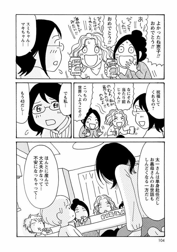漫画 【無料漫画】『そもそもウチには芝生がない』第10話「アラフォーでも“妊娠”で喜んでいいですか…!?」たちばなかおる (2/2ページ) 1ページ目から読む #無料漫画 #そもそもウチには芝生がない たちばなかおる 2024.11.05 ■『そもそもウチには芝生がない』過去回はこちらから読めます!■ 電子コミックス第1巻 電子コミックス最新刊13巻 ■無料で読める最新漫画はこちら 【漫画】食べれば人生が変わる「魔法メシ」…絶品からあげが「激ウマすぎる理由」とは 【漫画】あの頃の風景が今の自分を癒してくれる…心があったまる「昭和ドラマ」 【漫画】ママ友たちの壮絶「マウント合戦」…PTA活動の場はまさに「戦場」だった!? 【漫画】死ぬまで妻一筋のはずが…中年男が壊れた「年下同僚との一夜」 【漫画】リーマンもホストもハマる…「午前中しか味わえない」至福のおとこメシ 続きはこちら! 1 2 たちばなかおる たちばなかおる 12月14日生まれのA型、東京都出身。 主な著作『九後45は一周回って追いかける』『長男・次男・三男・夫よ 早く大人になってくれ!!(震え声)』『ユンタのゆっくり成長記』など。 無料漫画『そもそもウチには芝生がない』 【無料漫画】『そもそもウチには芝生がない』“住む世界が違いすぎる”アラフォー女性がPTAで痛感したギャップとは? 【無料漫画】『そもそもウチには芝生がない』第1話「3児の育児と仕事に追われる毎日…旦那はどこよ!?」たちばなかおる 【無料漫画】『そもそもウチには芝生がない』第2話「アラフォー女性が“イタさ”に気づく瞬間…?」たちばなかおる 【無料漫画】『そもそもウチには芝生がない』第3話「同居姑の“エグイひと言”に感情が大爆発…!?」たちばなかおる 【無料漫画】『そもそもウチには芝生がない』第4話「年下男子との出会いは恋の予感!?」たちばなかおる 【無料漫画】『そもそもウチには芝生がない』第5話「40代から“いい女”ってなれますか…!?」たちばなかおる 【無料漫画】『そもそもウチには芝生がない』第6話「“不完全な関係”が夫婦円満のヒケツ…!?」たちばなかおる 【無料漫画】『そもそもウチには芝生がない』第7話「年下男の“愛情表現”に10年ぶりの胸キュン!?」たちばなかおる 【無料漫画】『そもそもウチには芝生がない』第8話「ダンナの“浮気段階”を見抜く方法とは…?」たちばなかおる 【無料漫画】『そもそもウチには芝生がない』第9話「念願プロポーズは“親同居付き”…さぁどうする!? 」たちばなかおる 【無料漫画】『そもそもウチには芝生がない』第11話「男女がルームメイトって“アリ”ですか…!?」たちばなかおる 【無料漫画】『そもそもウチには芝生がない』第12話「年下男の靴下にイライラしちゃう理由とは…!?」たちばなかおる 【無料漫画】『そもそもウチには芝生がない』第13話「アラフォー女子が転機で下した“大決断”」たちばなかおる 【無料漫画】『そもそもウチには芝生がない』第14話「アラフォー女子が“優しさ”で涙をこぼす時…」たちばなかおる 【無料漫画】『そもそもウチには芝生がない』第15話「恐怖!?“マウンティング女子”の実態とは…」たちばなかおる 【無料漫画】『そもそもウチには芝生がない』第16話「やさしいママがいきなり情緒不安定に…!?」たちばなかおる 【無料漫画】『そもそもウチには芝生がない』第17話「同世代の友達が“若返って見える”瞬間って…?」たちばなかおる 【無料漫画】『そもそもウチには芝生がない』第18話「人生で味わえる一番の痛み」たちばなかおる 【無料漫画】『そもそもウチには芝生がない』第19話「思ってたより痛い!? 40代出産のリアル…」たちばなかおる 【無料漫画】『そもそもウチには芝生がない』第20話「出産直後にイラッとくる“夫の地雷発言”」たちばなかおる 【無料漫画】『そもそもウチには芝生がない』第21話「新米ママが怯える…“子育てのピーク”っていつよ!」たちばなかおる 【無料漫画】『そもそもウチには芝生がない』第22話「既読スルーに“他の女の影”を感じる瞬間って…!?」たちばなかおる 【無料漫画】『そもそもウチには芝生がない』第23話「40女の大失恋…号泣以外の傷心ケアって?」たちばなかおる 【無料漫画】『そもそもウチには芝生がない』第24話「ダンナは“人生で一番好きな人”じゃない…!?」たちばなかおる 【無料漫画】『そもそもウチには芝生がない』第25話「カレに“運命”を感じる瞬間って…?」たちばなかおる 【無料漫画】『そもそもウチには芝生がない』第26話「元カレからメールって、どう返すのが正解なの…!?」たちばなかおる 【無料漫画】『そもそもウチには芝生がない』第27話「思い出の元カレから突然のお誘い…どうする!?」たちばなかおる 【無料漫画】『そもそもウチには芝生がない』第28話「若い頃の元カレが超イケオジ化してたら…?」たちばなかおる 【無料漫画】『そもそもウチには芝生がない』第29話「元彼の衝撃告白に…涙腺崩壊!」たちばなかおる 【無料漫画】『