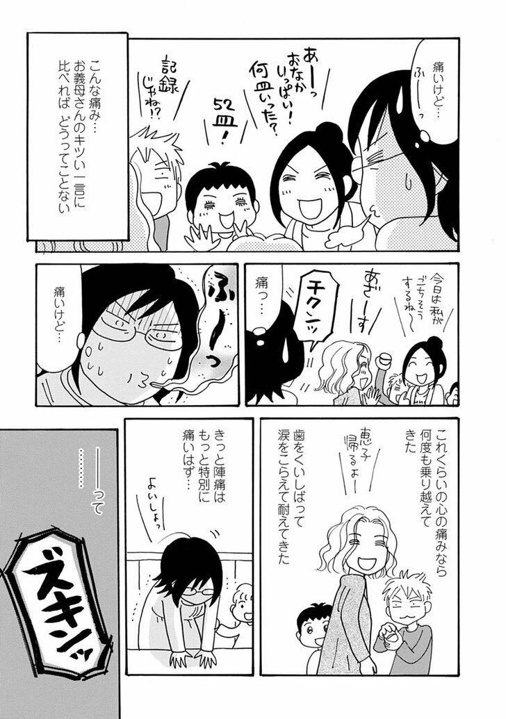 漫画 【無料漫画】『そもそもウチには芝生がない』第18話「人生で味わえる一番の痛み」たちばなかおる (2/2ページ) 1ページ目から読む #無料漫画 #そもそもウチには芝生がない たちばなかおる 2024.12.03 ■『そもそもウチには芝生がない』過去回はこちらから読めます!■ 電子コミックス第1巻 電子コミックス最新刊13巻 ■無料で読める最新漫画はこちら 【漫画】周囲をさんざん傷つけてきた女子、突然の「謝罪の言葉」は信じていい? 【漫画】貧乏、親からのDV、リストラ…どん底女子が生きるために選んだ「ヤバイお仕事」 【漫画】食べれば人生が変わる「魔法メシ」…絶品からあげが「激ウマすぎる理由」とは 【漫画】あの頃の風景が今の自分を癒してくれる…心があったまる「昭和ドラマ」 【漫画】ママ友たちの壮絶「マウント合戦」…PTA活動の場はまさに「戦場」だった!? 続きはこちら! 1 2 たちばなかおる たちばなかおる 12月14日生まれのA型、東京都出身。 主な著作『九後45は一周回って追いかける』『長男・次男・三男・夫よ 早く大人になってくれ!!(震え声)』『ユンタのゆっくり成長記』など。 無料漫画『そもそもウチには芝生がない』 【無料漫画】『そもそもウチには芝生がない』“住む世界が違いすぎる”アラフォー女性がPTAで痛感したギャップとは? 【無料漫画】『そもそもウチには芝生がない』第1話「3児の育児と仕事に追われる毎日…旦那はどこよ!?」たちばなかおる 【無料漫画】『そもそもウチには芝生がない』第2話「アラフォー女性が“イタさ”に気づく瞬間…?」たちばなかおる 【無料漫画】『そもそもウチには芝生がない』第3話「同居姑の“エグイひと言”に感情が大爆発…!?」たちばなかおる 【無料漫画】『そもそもウチには芝生がない』第4話「年下男子との出会いは恋の予感!?」たちばなかおる 【無料漫画】『そもそもウチには芝生がない』第5話「40代から“いい女”ってなれますか…!?」たちばなかおる 【無料漫画】『そもそもウチには芝生がない』第6話「“不完全な関係”が夫婦円満のヒケツ…!?」たちばなかおる 【無料漫画】『そもそもウチには芝生がない』第7話「年下男の“愛情表現”に10年ぶりの胸キュン!?」たちばなかおる 【無料漫画】『そもそもウチには芝生がない』第8話「ダンナの“浮気段階”を見抜く方法とは…?」たちばなかおる 【無料漫画】『そもそもウチには芝生がない』第9話「念願プロポーズは“親同居付き”…さぁどうする!? 」たちばなかおる 【無料漫画】『そもそもウチには芝生がない』第10話「アラフォーでも“妊娠”で喜んでいいですか…!?」たちばなかおる 【無料漫画】『そもそもウチには芝生がない』第11話「男女がルームメイトって“アリ”ですか…!?」たちばなかおる 【無料漫画】『そもそもウチには芝生がない』第12話「年下男の靴下にイライラしちゃう理由とは…!?」たちばなかおる 【無料漫画】『そもそもウチには芝生がない』第13話「アラフォー女子が転機で下した“大決断”」たちばなかおる 【無料漫画】『そもそもウチには芝生がない』第14話「アラフォー女子が“優しさ”で涙をこぼす時…」たちばなかおる 【無料漫画】『そもそもウチには芝生がない』第15話「恐怖!?“マウンティング女子”の実態とは…」たちばなかおる 【無料漫画】『そもそもウチには芝生がない』第16話「やさしいママがいきなり情緒不安定に…!?」たちばなかおる 【無料漫画】『そもそもウチには芝生がない』第17話「同世代の友達が“若返って見える”瞬間って…?」たちばなかおる 【無料漫画】『そもそもウチには芝生がない』第19話「思ってたより痛い!? 40代出産のリアル…」たちばなかおる 【無料漫画】『そもそもウチには芝生がない』第20話「出産直後にイラッとくる“夫の地雷発言”」たちばなかおる 【無料漫画】『そもそもウチには芝生がない』第21話「新米ママが怯える…“子育てのピーク”っていつよ!」たちばなかおる 【無料漫画】『そもそもウチには芝生がない』第22話「既読スルーに“他の女の影”を感じる瞬間って…!?」たちばなかおる 【無料漫画】『そもそもウチには芝生がない』第23話「40女の大失恋…号泣以外の傷心ケアって?」たちばなかおる 【無料漫画】『そもそもウチには芝生がない』第24話「ダンナは“人生で一番好きな人”じゃない…!?」たちばなかおる 【無料漫画】『そもそもウチには芝生がない』第25話「カレに“運命”を感じる瞬間って…?」たちばなかおる 【無料漫画】『そもそもウチには芝生がない』第26話「元カレからメールって、どう返すのが正解なの…!?」たちばなかおる 【無料漫画】『そもそもウチには芝生がない』第27話「思い出の元カレから突然のお誘い…どうする!?」たちばなかおる 【無料漫画】『そもそもウチには芝生がない』第28話「若い頃の元カレが超イケオジ化してたら…?」たちばなかおる 【無料漫画】『そもそもウチには芝生がない』第29話「元彼の衝撃告白に…涙腺崩壊!」たちばなかおる 
