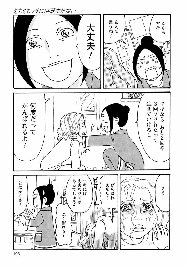 漫画 【無料漫画】『そもそもウチには芝生がない』第23話「40女の大失恋…号泣以外の傷心ケアって?」たちばなかおる (2/2ページ) 1ページ目から読む #無料漫画 #そもそもウチには芝生がない たちばなかおる 2024.12.20 ■『そもそもウチには芝生がない』過去回はこちらから読めます!■ 電子コミックス第1巻 電子コミックス最新刊13巻 ■無料で読める最新漫画はこちら 【漫画】周囲をさんざん傷つけてきた女子、突然の「謝罪の言葉」は信じていい? 【漫画】貧乏、親からのDV、リストラ…どん底女子が生きるために選んだ「ヤバイお仕事」 【漫画】食べれば人生が変わる「魔法メシ」…絶品からあげが「激ウマすぎる理由」とは 【漫画】あの頃の風景が今の自分を癒してくれる…心があったまる「昭和ドラマ」 【漫画】ママ友たちの壮絶「マウント合戦」…PTA活動の場はまさに「戦場」だった!? 続きはこちら! 1 2 たちばなかおる たちばなかおる 12月14日生まれのA型、東京都出身。 主な著作『九後45は一周回って追いかける』『長男・次男・三男・夫よ 早く大人になってくれ!!(震え声)』『ユンタのゆっくり成長記』など。 無料漫画『そもそもウチには芝生がない』 【無料漫画】『そもそもウチには芝生がない』“住む世界が違いすぎる”アラフォー女性がPTAで痛感したギャップとは? 【無料漫画】『そもそもウチには芝生がない』第1話「3児の育児と仕事に追われる毎日…旦那はどこよ!?」たちばなかおる 【無料漫画】『そもそもウチには芝生がない』第2話「アラフォー女性が“イタさ”に気づく瞬間…?」たちばなかおる 【無料漫画】『そもそもウチには芝生がない』第3話「同居姑の“エグイひと言”に感情が大爆発…!?」たちばなかおる 【無料漫画】『そもそもウチには芝生がない』第4話「年下男子との出会いは恋の予感!?」たちばなかおる 【無料漫画】『そもそもウチには芝生がない』第5話「40代から“いい女”ってなれますか…!?」たちばなかおる 【無料漫画】『そもそもウチには芝生がない』第6話「“不完全な関係”が夫婦円満のヒケツ…!?」たちばなかおる 【無料漫画】『そもそもウチには芝生がない』第7話「年下男の“愛情表現”に10年ぶりの胸キュン!?」たちばなかおる 【無料漫画】『そもそもウチには芝生がない』第8話「ダンナの“浮気段階”を見抜く方法とは…?」たちばなかおる 【無料漫画】『そもそもウチには芝生がない』第9話「念願プロポーズは“親同居付き”…さぁどうする!? 」たちばなかおる 【無料漫画】『そもそもウチには芝生がない』第10話「アラフォーでも“妊娠”で喜んでいいですか…!?」たちばなかおる 【無料漫画】『そもそもウチには芝生がない』第11話「男女がルームメイトって“アリ”ですか…!?」たちばなかおる 【無料漫画】『そもそもウチには芝生がない』第12話「年下男の靴下にイライラしちゃう理由とは…!?」たちばなかおる 【無料漫画】『そもそもウチには芝生がない』第13話「アラフォー女子が転機で下した“大決断”」たちばなかおる 【無料漫画】『そもそもウチには芝生がない』第14話「アラフォー女子が“優しさ”で涙をこぼす時…」たちばなかおる 【無料漫画】『そもそもウチには芝生がない』第15話「恐怖!?“マウンティング女子”の実態とは…」たちばなかおる 【無料漫画】『そもそもウチには芝生がない』第16話「やさしいママがいきなり情緒不安定に…!?」たちばなかおる 【無料漫画】『そもそもウチには芝生がない』第17話「同世代の友達が“若返って見える”瞬間って…?」たちばなかおる 【無料漫画】『そもそもウチには芝生がない』第18話「人生で味わえる一番の痛み」たちばなかおる 【無料漫画】『そもそもウチには芝生がない』第19話「思ってたより痛い!? 40代出産のリアル…」たちばなかおる 【無料漫画】『そもそもウチには芝生がない』第20話「出産直後にイラッとくる“夫の地雷発言”」たちばなかおる 【無料漫画】『そもそもウチには芝生がない』第21話「新米ママが怯える…“子育てのピーク”っていつよ!」たちばなかおる 【無料漫画】『そもそもウチには芝生がない』第22話「既読スルーに“他の女の影”を感じる瞬間って…!?」たちばなかおる 【無料漫画】『そもそもウチには芝生がない』第24話「ダンナは“人生で一番好きな人”じゃない…!?」たちばなかおる 【無料漫画】『そもそもウチには芝生がない』第25話「カレに“運命”を感じる瞬間って…?」たちばなかおる 【無料漫画】『そもそもウチには芝生がない』第26話「元カレからメールって、どう返すのが正解なの…!?」たちばなかおる 【無料漫画】『そもそもウチには芝生がない』第27話「思い出の元カレから突然のお誘い…どうする!?」たちばなかおる 【無料漫画】『そもそもウチには芝生がない』第28話「若い頃の元カレが超イケオジ化してたら…?」たちばなかおる 【無料漫画】『そもそもウチには芝生がない』第29話「元彼の衝撃告白に…涙腺崩壊!」たちばなかおる 
