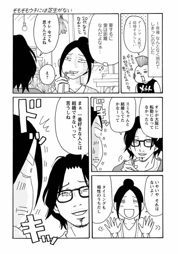 漫画 【無料漫画】『そもそもウチには芝生がない』第28話「若い頃の元カレが超イケオジ化してたら…?」たちばなかおる (2/2ページ) 1ページ目から読む #無料漫画 #そもそもウチには芝生がない たちばなかおる 2025.01.07 ■『そもそもウチには芝生がない』過去回はこちらから読めます!■ 電子コミックス第1巻 電子コミックス最新刊13巻 ■無料で読める最新漫画はこちら 【漫画】「孤独死」はいかに忍び寄る? 高齢者単身世帯のリアルな現状 【漫画】借金を抱えブラックすぎる毎日を過ごす私が「一発逆転」できたワケ 【漫画】「なんて下品な言葉づかいの店員なの」うるさい客を成敗した「驚きの行動」 【漫画】ささみの缶詰が激変!手間なし5分でサクッと作れる「激ウマつまみ」とは 【漫画】「ぽっちゃり」は魅力にならないの?悩み多き25歳女子が自分を取り戻すまで 続きはこちら! 1 2 たちばなかおる たちばなかおる 12月14日生まれのA型、東京都出身。 主な著作『九後45は一周回って追いかける』『長男・次男・三男・夫よ 早く大人になってくれ!!(震え声)』『ユンタのゆっくり成長記』など。 無料漫画『そもそもウチには芝生がない』 【無料漫画】『そもそもウチには芝生がない』“住む世界が違いすぎる”アラフォー女性がPTAで痛感したギャップとは? 【無料漫画】『そもそもウチには芝生がない』第1話「3児の育児と仕事に追われる毎日…旦那はどこよ!?」たちばなかおる 【無料漫画】『そもそもウチには芝生がない』第2話「アラフォー女性が“イタさ”に気づく瞬間…?」たちばなかおる 【無料漫画】『そもそもウチには芝生がない』第3話「同居姑の“エグイひと言”に感情が大爆発…!?」たちばなかおる 【無料漫画】『そもそもウチには芝生がない』第4話「年下男子との出会いは恋の予感!?」たちばなかおる 【無料漫画】『そもそもウチには芝生がない』第5話「40代から“いい女”ってなれますか…!?」たちばなかおる 【無料漫画】『そもそもウチには芝生がない』第6話「“不完全な関係”が夫婦円満のヒケツ…!?」たちばなかおる 【無料漫画】『そもそもウチには芝生がない』第7話「年下男の“愛情表現”に10年ぶりの胸キュン!?」たちばなかおる 【無料漫画】『そもそもウチには芝生がない』第8話「ダンナの“浮気段階”を見抜く方法とは…?」たちばなかおる 【無料漫画】『そもそもウチには芝生がない』第9話「念願プロポーズは“親同居付き”…さぁどうする!? 」たちばなかおる 【無料漫画】『そもそもウチには芝生がない』第10話「アラフォーでも“妊娠”で喜んでいいですか…!?」たちばなかおる 【無料漫画】『そもそもウチには芝生がない』第11話「男女がルームメイトって“アリ”ですか…!?」たちばなかおる 【無料漫画】『そもそもウチには芝生がない』第12話「年下男の靴下にイライラしちゃう理由とは…!?」たちばなかおる 【無料漫画】『そもそもウチには芝生がない』第13話「アラフォー女子が転機で下した“大決断”」たちばなかおる 【無料漫画】『そもそもウチには芝生がない』第14話「アラフォー女子が“優しさ”で涙をこぼす時…」たちばなかおる 【無料漫画】『そもそもウチには芝生がない』第15話「恐怖!?“マウンティング女子”の実態とは…」たちばなかおる 【無料漫画】『そもそもウチには芝生がない』第16話「やさしいママがいきなり情緒不安定に…!?」たちばなかおる 【無料漫画】『そもそもウチには芝生がない』第17話「同世代の友達が“若返って見える”瞬間って…?」たちばなかおる 【無料漫画】『そもそもウチには芝生がない』第18話「人生で味わえる一番の痛み」たちばなかおる 【無料漫画】『そもそもウチには芝生がない』第19話「思ってたより痛い!? 40代出産のリアル…」たちばなかおる 【無料漫画】『そもそもウチには芝生がない』第20話「出産直後にイラッとくる“夫の地雷発言”」たちばなかおる 【無料漫画】『そもそもウチには芝生がない』第21話「新米ママが怯える…“子育てのピーク”っていつよ!」たちばなかおる 【無料漫画】『そもそもウチには芝生がない』第22話「既読スルーに“他の女の影”を感じる瞬間って…!?」たちばなかおる 【無料漫画】『そもそもウチには芝生がない』第23話「40女の大失恋…号泣以外の傷心ケアって?」たちばなかおる 【無料漫画】『そもそもウチには芝生がない』第24話「ダンナは“人生で一番好きな人”じゃない…!?」たちばなかおる 【無料漫画】『そもそもウチには芝生がない』第25話「カレに“運命”を感じる瞬間って…?」たちばなかおる 【無料漫画】『そもそもウチには芝生がない』第26話「元カレからメールって、どう返すのが正解なの…!?」たちばなかおる 【無料漫画】『そもそもウチには芝生がない』第27話「思い出の元カレから突然のお誘い…どうする!?」たちばなかおる 【無料漫画】『そもそもウチには芝生がない』第29話「元彼の衝撃告白に…涙腺崩壊!」たちばなかおる 【無料漫画】『そもそもウ