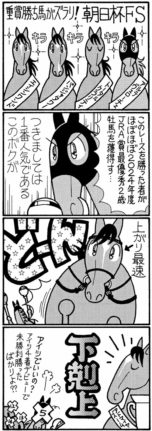 漫画 【無料漫画】競馬4コマ『馬なりde SHOW』ツワモノ揃いの中で…! #よしだみほ #漫画(マンガ) #4コマ漫画 #無料漫画 よしだみほ 2025.02.10 よしだみほ よしだみほ 『週刊大衆』連載中「馬なり de SHOW」と、netkeiba.com連載中「馬なり1ハロン!NEO」からの特選回、さらに描き下ろし4ページマンガ「VIP Party 2020」を収録した記念冊子【馬なりミニハロン劇場】を双葉社ECサイト上で発売中!歴史的な出来事が多かった2020年競馬界を、この1冊で振り返りましょう! よしだみほ よしだみほ 馬と舞台演劇を愛する競馬マンガ家。 趣味は観劇(俳優:鹿賀丈史・滝田栄推し)&キャラ惚れベースの日本史研究。 好物はお寿司とデコポン。 ポスト シェア LINEで送る
