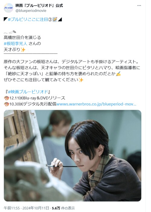 その他 『約束のネバーランド』に『ブルーピリオド』も…「美しさとのギャップに見惚れる」板垣李光人が漫画実写化作品で見せた「胸アツ演技」 (3/3ページ) 1ページ目から読む #板垣李光人 #約束のネバーランド スパロウ 2025.03.17 ■【画像】「天才感がハンパない…」板垣李光人さんの「指先まで行き届いた演技」 ※画像は2024年に投稿された映画『ブルーピリオド』公式「@blueperiodmovie」のポストより -画像の記事に戻る- 1 2 3 すぱろう スパロウ アニメ・漫画系の記事を多数執筆する30代Webライター。アニメ・映画・芸能・サブカル系が得意ジャンル。 ポスト シェア LINEで送る