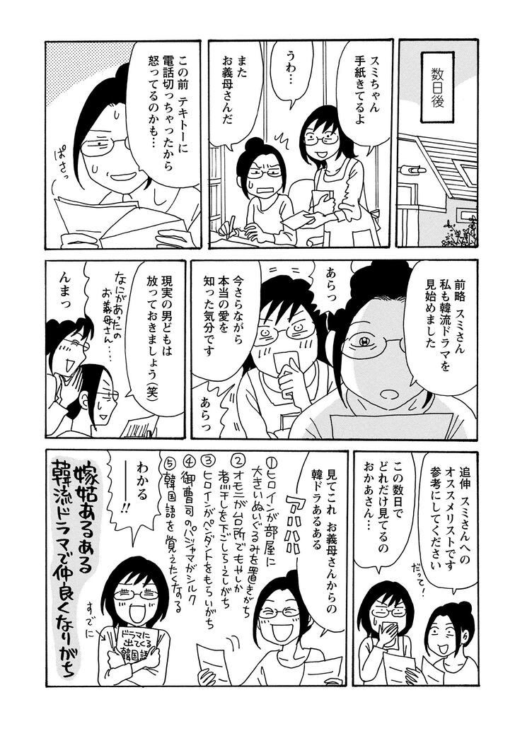 漫画 【無料漫画】『そもそもウチには芝生がない』第63話「なぜアラフォー女に韓流ドラマが染みるのか…!?」たちばなかおる (2/2ページ) 1ページ目から読む #無料漫画 #そもそもウチには芝生がない たちばなかおる 2025.05.09 ■『そもそもウチには芝生がない』過去回はこちらから読めます!■ 電子コミックス第1巻 電子コミックス最新刊14巻 ■無料で読める最新漫画はこちら 【漫画】クラス一の美少女からラブレターが!中身は記入済の婚姻届で…… 【漫画】おばちゃんが異世界転生したらものすごく頼られるように…いったいなぜ? 【漫画】「荷物は頼んでない」玄関前に置かれた不気味すぎるプレゼントの正体 【漫画】持参した弁当…コワモテ部長に「食べてもいい?」と頼まれ断れなかった結果 【漫画】長年の宿敵…絶対好きになっちゃダメなのにどうしてもドキドキが止まらない 続きはこちら! 1 2 たちばなかおる たちばなかおる 12月14日生まれのA型、東京都出身。 主な著作『九後45は一周回って追いかける』『長男・次男・三男・夫よ 早く大人になってくれ!!(震え声)』『ユンタのゆっくり成長記』など。 無料漫画『そもそもウチには芝生がない』 【無料漫画】『そもそもウチには芝生がない』“住む世界が違いすぎる”アラフォー女性がPTAで痛感したギャップとは? 【無料漫画】『そもそもウチには芝生がない』第1話「3児の育児と仕事に追われる毎日…旦那はどこよ!?」たちばなかおる 【無料漫画】『そもそもウチには芝生がない』第2話「アラフォー女性が“イタさ”に気づく瞬間…?」たちばなかおる 【無料漫画】『そもそもウチには芝生がない』第3話「同居姑の“エグイひと言”に感情が大爆発…!?」たちばなかおる 【無料漫画】『そもそもウチには芝生がない』第4話「年下男子との出会いは恋の予感!?」たちばなかおる 【無料漫画】『そもそもウチには芝生がない』第5話「40代から“いい女”ってなれますか…!?」たちばなかおる 【無料漫画】『そもそもウチには芝生がない』第6話「“不完全な関係”が夫婦円満のヒケツ…!?」たちばなかおる 【無料漫画】『そもそもウチには芝生がない』第7話「年下男の“愛情表現”に10年ぶりの胸キュン!?」たちばなかおる 【無料漫画】『そもそもウチには芝生がない』第8話「ダンナの“浮気段階”を見抜く方法とは…?」たちばなかおる 【無料漫画】『そもそもウチには芝生がない』第9話「念願プロポーズは“親同居付き”…さぁどうする!? 」たちばなかおる 【無料漫画】『そもそもウチには芝生がない』第10話「アラフォーでも“妊娠”で喜んでいいですか…!?」たちばなかおる 【無料漫画】『そもそもウチには芝生がない』第11話「男女がルームメイトって“アリ”ですか…!?」たちばなかおる 【無料漫画】『そもそもウチには芝生がない』第12話「年下男の靴下にイライラしちゃう理由とは…!?」たちばなかおる 【無料漫画】『そもそもウチには芝生がない』第13話「アラフォー女子が転機で下した“大決断”」たちばなかおる 【無料漫画】『そもそもウチには芝生がない』第14話「アラフォー女子が“優しさ”で涙をこぼす時…」たちばなかおる 【無料漫画】『そもそもウチには芝生がない』第15話「恐怖!?“マウンティング女子”の実態とは…」たちばなかおる 【無料漫画】『そもそもウチには芝生がない』第16話「やさしいママがいきなり情緒不安定に…!?」たちばなかおる 【無料漫画】『そもそもウチには芝生がない』第17話「同世代の友達が“若返って見える”瞬間って…?」たちばなかおる 【無料漫画】『そもそもウチには芝生がない』第18話「人生で味わえる一番の痛み」たちばなかおる 【無料漫画】『そもそもウチには芝生がない』第19話「思ってたより痛い!? 40代出産のリアル…」たちばなかおる 【無料漫画】『そもそもウチには芝生がない』第20話「出産直後にイラッとくる“夫の地雷発言”」たちばなかおる 【無料漫画】『そもそもウチには芝生がない』第21話「新米ママが怯える…“子育てのピーク”っていつよ!」たちばなかおる 【無料漫画】『そもそもウチには芝生がない』第22話「既読スルーに“他の女の影”を感じる瞬間って…!?」たちばなかおる 【無料漫画】『そもそもウチには芝生がない』第23話「40女の大失恋…号泣以外の傷心ケアって?」たちばなかおる 【無料漫画】『そもそもウチには芝生がない』第24話「ダンナは“人生で一番好きな人”じゃない…!?」たちばなかおる 【無料漫画】『そもそもウチには芝生がない』第25話「カレに“運命”を感じる瞬間って…?」たちばなかおる 【無料漫画】『そもそもウチには芝生がない』第26話「元カレからメールって、どう返すのが正解なの…!?」たちばなかおる 【無料漫画】『そもそもウチには芝生がない』第27話「思い出の元カレから突然のお誘い…どうする!?」たちばなかおる 【無料漫画】『そもそもウチには芝生がない』第28話「若い頃の元カレが超イケオジ化してたら…?」たちばなかおる 