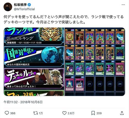 ゲーム 『遊☆戯☆王』カードゲーム愛が溢れ出るイケメン俳優たち! 松坂桃李に中島健人、志尊淳に赤楚衛二も… (3/3ページ) 1ページ目から読む #週刊少年ジャンプ #遊戯王 #松坂桃李 #菅田将暉 #オールナイトニッポン #中島健人 #東京ゲームショウ #志尊淳 #BOYS AND MEN #赤楚衛二 #仮面ライダー 創也慎介 2025.05.12 ■【画像】「これはガチすぎる」Xでデッキを公開、ラジオでも…『遊戯王』への愛が溢れすぎる松坂桃李さん ※松坂桃李公式X(@MToriofficial)のポストより ※松坂桃李公式X(@MToriofficial)のポストより ※松坂桃李公式X(@MToriofficial)のポストより -画像の記事に戻る- 1 2 3 つくりやしんすけ 創也慎介 岡山県出身。現在は千葉で1児の父として奮闘するかたわら、作家、物書きを目指して進む毎日。幼少期から現在まで『ジョジョの奇妙な冒険』を愛読。アクション、バトル、ホラーなどのサブカルを好む。 Twitter:@tsukuriya0000 ポスト シェア LINEで送る