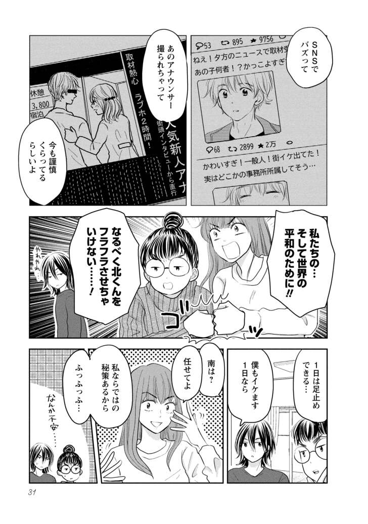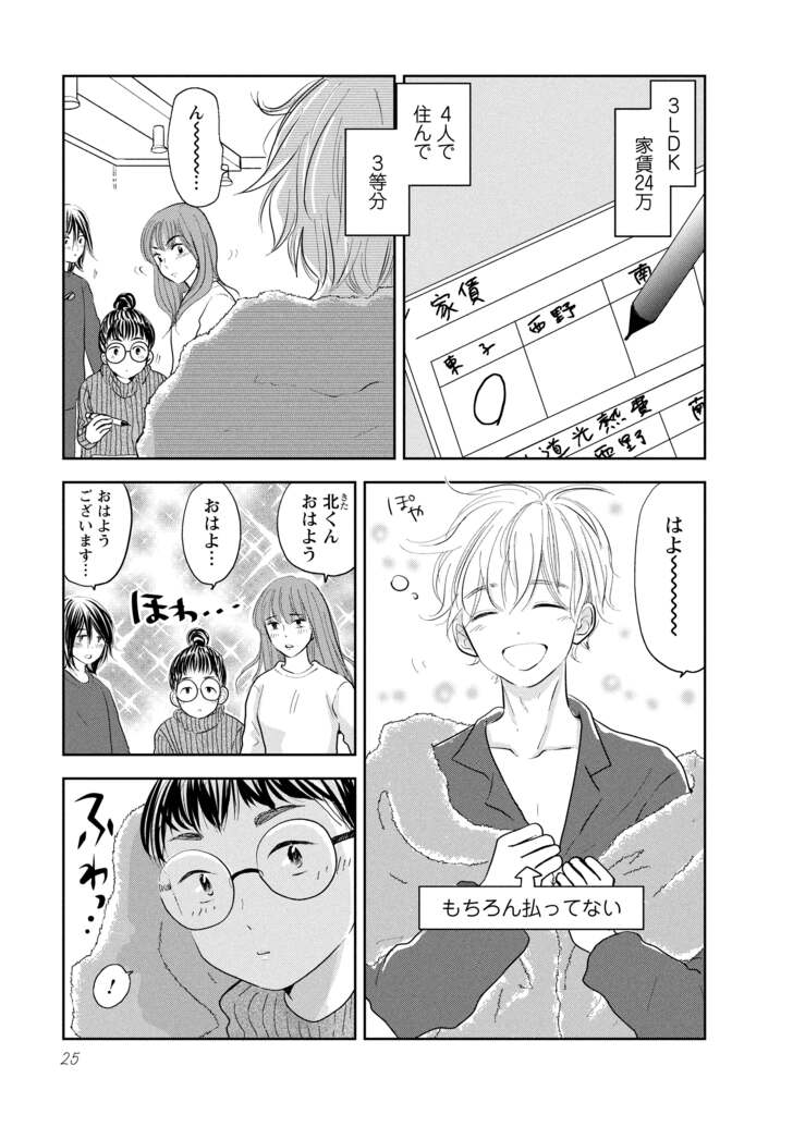 そんな極上イケメンヒモ男・北くん(26)を繋ぎとめるべく、東子(31・女)、南(29・女)、西野(24・男)の3人が手を組み導き出した答え、それが「カレをシェアするシェアハウス」生活!!