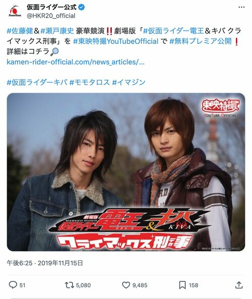 その他 『電王』佐藤健はブレイクダンス、『フォーゼ』福士蒼汰はダブルダッチ…『仮面ライダー』で“持ち前の特技”を披露した俳優たち (3/3ページ) 1ページ目から読む #特撮 #仮面ライダー #佐藤健 #福士蒼汰 #水嶋ヒロ #山本裕典 海狸こう平 2025.07.02 ■【画像】当時10代! 『仮面ライダー電王』佐藤健さん&瀬戸康史さん ※仮面ライダー公式X(@HKR20_official)のポストより -画像の記事に戻る- 1 2 3 かいりこうへい 海狸こう平 アニメ製作会社を経てフリーライターに。『コロコロコミック』『少年ジャンプ』の漫画やアニメを見て育つ。モットーは「広く浅く、ときどき潜る。」 ポスト シェア LINEで送る