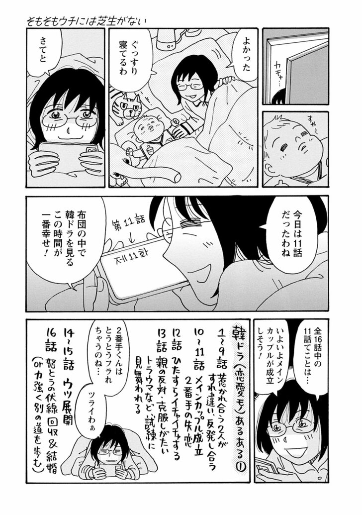 【無料漫画】『そもそもウチには芝生がない』第80話「育児疲れには韓国ドラマがよく効く!? 」たちばなかおるの画像