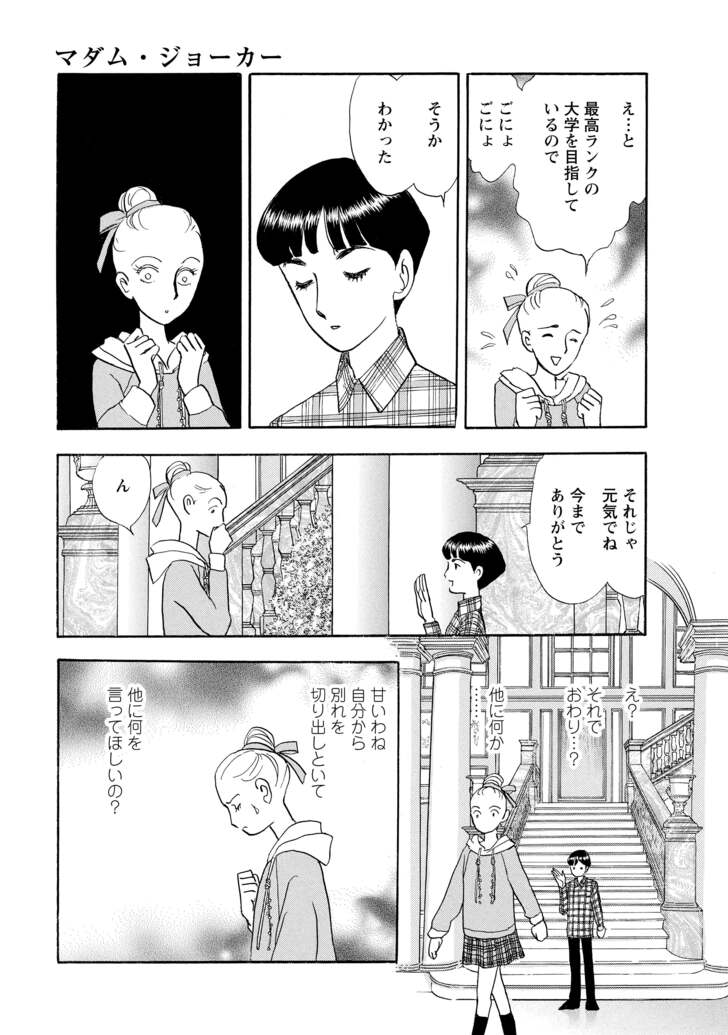 漫画 【無料漫画】『マダム・ジョーカー』好きなコを手に入れるための“作戦” (4/4ページ) 1ページ目から読む #無料漫画 名香智子 2025.08.12 この続きは、コミックスにてお楽しみください ■無料で読める最新漫画はこちら 【漫画】街中で因縁を付けられ相手を撃退!でも逮捕されたのは自分のほうで… 【漫画】ぼっち高校生が、新しくできた"友だち"に巻き込まれた思わぬトラブル 【漫画】力士が一人前になるまで何円かかる?裏で動く巨大なカネを追跡 【漫画】夫に仕事の運転資金を使いこまれたので、合法的に復讐することにしました 1 2 3 4 なかともこ 名香智子 埼玉県川越市出身。「別冊フレンド」でデビュー。ロマンスからミステリーまで、あらゆるジャンルを手がける。作品に『DOUBT!』『ころばぬ魔法の杖』など多数。 「JOUR」(双葉社・毎月2日発売)にて連載中の『マダム・ジョーカー』は2020年に20周年を迎え、2023年には画業50周年を迎えた。 ポスト シェア LINEで送る