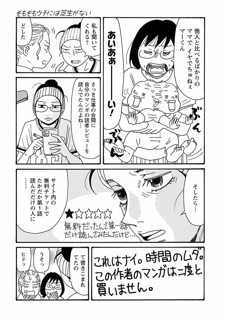 漫画 【無料漫画】『そもそもウチには芝生がない』第92話「他人の言葉にイライラが止まらない…!?」たちばなかおる (2/2ページ) 1ページ目から読む #無料漫画 #そもそもウチには芝生がない たちばなかおる 2025.08.19 ■『そもそもウチには芝生がない』過去回はこちらから読めます!■ 電子コミックス第1巻 電子コミックス最新刊14巻 ■無料で読める最新漫画はこちら 【漫画】孫を「施設に預けろ」と言い放つ娘に激怒した祖母「最善のことはしてあげたいけど」 【漫画】「アタシがいると職場に迷惑がかかる」協調性ゼロ女に差し伸べられた手 【漫画】「転職しようかな」帰省すらできない多忙さでも"海外旅行"をする方法は 【漫画】ママ友たちの壮絶「マウント合戦」…PTA活動の場はまさに「戦場」だった!? 続きはこちら! 1 2 たちばなかおる たちばなかおる 12月14日生まれのA型、東京都出身。 主な著作『九後45は一周回って追いかける』『長男・次男・三男・夫よ 早く大人になってくれ!!(震え声)』『ユンタのゆっくり成長記』など。 無料漫画『そもそもウチには芝生がない』 【無料漫画】『そもそもウチには芝生がない』“住む世界が違いすぎる”アラフォー女性がPTAで痛感したギャップとは? 【無料漫画】『そもそもウチには芝生がない』第1話「3児の育児と仕事に追われる毎日…旦那はどこよ!?」たちばなかおる 【無料漫画】『そもそもウチには芝生がない』第2話「アラフォー女性が“イタさ”に気づく瞬間…?」たちばなかおる 【無料漫画】『そもそもウチには芝生がない』第3話「同居姑の“エグイひと言”に感情が大爆発…!?」たちばなかおる 【無料漫画】『そもそもウチには芝生がない』第4話「年下男子との出会いは恋の予感!?」たちばなかおる 【無料漫画】『そもそもウチには芝生がない』第5話「40代から“いい女”ってなれますか…!?」たちばなかおる 【無料漫画】『そもそもウチには芝生がない』第6話「“不完全な関係”が夫婦円満のヒケツ…!?」たちばなかおる 【無料漫画】『そもそもウチには芝生がない』第7話「年下男の“愛情表現”に10年ぶりの胸キュン!?」たちばなかおる 【無料漫画】『そもそもウチには芝生がない』第8話「ダンナの“浮気段階”を見抜く方法とは…?」たちばなかおる 【無料漫画】『そもそもウチには芝生がない』第9話「念願プロポーズは“親同居付き”…さぁどうする!? 」たちばなかおる 【無料漫画】『そもそもウチには芝生がない』第10話「アラフォーでも“妊娠”で喜んでいいですか…!?」たちばなかおる 【無料漫画】『そもそもウチには芝生がない』第11話「男女がルームメイトって“アリ”ですか…!?」たちばなかおる 【無料漫画】『そもそもウチには芝生がない』第12話「年下男の靴下にイライラしちゃう理由とは…!?」たちばなかおる 【無料漫画】『そもそもウチには芝生がない』第13話「アラフォー女子が転機で下した“大決断”」たちばなかおる 【無料漫画】『そもそもウチには芝生がない』第14話「アラフォー女子が“優しさ”で涙をこぼす時…」たちばなかおる 【無料漫画】『そもそもウチには芝生がない』第15話「恐怖!?“マウンティング女子”の実態とは…」たちばなかおる 【無料漫画】『そもそもウチには芝生がない』第16話「やさしいママがいきなり情緒不安定に…!?」たちばなかおる 【無料漫画】『そもそもウチには芝生がない』第17話「同世代の友達が“若返って見える”瞬間って…?」たちばなかおる 【無料漫画】『そもそもウチには芝生がない』第18話「人生で味わえる一番の痛み」たちばなかおる 【無料漫画】『そもそもウチには芝生がない』第19話「思ってたより痛い!? 40代出産のリアル…」たちばなかおる 【無料漫画】『そもそもウチには芝生がない』第20話「出産直後にイラッとくる“夫の地雷発言”」たちばなかおる 【無料漫画】『そもそもウチには芝生がない』第21話「新米ママが怯える…“子育てのピーク”っていつよ!」たちばなかおる 【無料漫画】『そもそもウチには芝生がない』第22話「既読スルーに“他の女の影”を感じる瞬間って…!?」たちばなかおる 【無料漫画】『そもそもウチには芝生がない』第23話「40女の大失恋…号泣以外の傷心ケアって?」たちばなかおる 【無料漫画】『そもそもウチには芝生がない』第24話「ダンナは“人生で一番好きな人”じゃない…!?」たちばなかおる 【無料漫画】『そもそもウチには芝生がない』第25話「カレに“運命”を感じる瞬間って…?」たちばなかおる 【無料漫画】『そもそもウチには芝生がない』第26話「元カレからメールって、どう返すのが正解なの…!?」たちばなかおる 【無料漫画】『そもそもウチには芝生がない』第27話「思い出の元カレから突然のお誘い…どうする!?」たちばなかおる 【無料漫画】『そもそもウチには芝生がない』第28話「若い頃の元カレが超イケオジ化してたら…?」たちばなかおる 【無料漫画】『そもそもウチには芝生がない』第29話「元彼の衝撃告白に…
