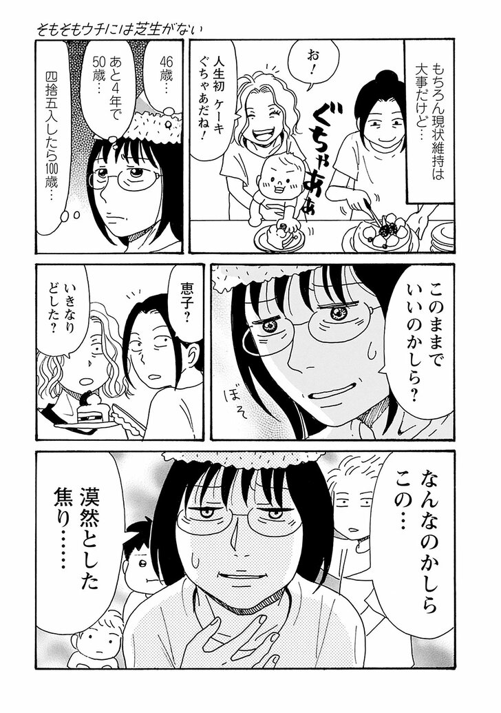 【無料漫画】『そもそもウチには芝生がない』第93話「40女に押し寄せる“このままで大丈夫…?”」たちばなかおるの画像