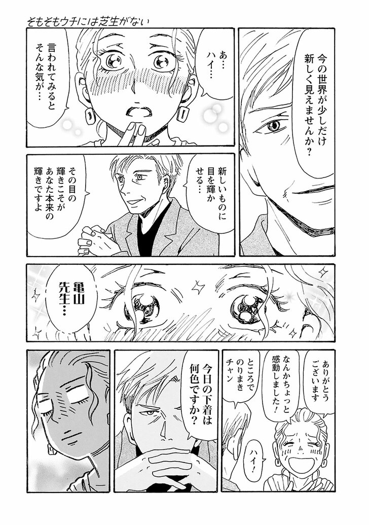漫画 【無料漫画】『そもそもウチには芝生がない』第96話「オトナにふさわしい知識量ってどのくらい…?」たちばなかおる (2/2ページ) 1ページ目から読む #無料漫画 #そもそもウチには芝生がない たちばなかおる 2025.09.02 ■『そもそもウチには芝生がない』過去回はこちらから読めます!■ 電子コミックス第1巻 電子コミックス最新刊14巻 ■無料で読める最新漫画はこちら 【漫画】孫を「施設に預けろ」と言い放つ娘に激怒した祖母「最善のことはしてあげたいけど」 【漫画】「アタシがいると職場に迷惑がかかる」協調性ゼロ女に差し伸べられた手 【漫画】「転職しようかな」帰省すらできない多忙さでも"海外旅行"をする方法は 【漫画】ママ友たちの壮絶「マウント合戦」…PTA活動の場はまさに「戦場」だった!? 続きはこちら! 1 2 たちばなかおる たちばなかおる 12月14日生まれのA型、東京都出身。 主な著作『九後45は一周回って追いかける』『長男・次男・三男・夫よ 早く大人になってくれ!!(震え声)』『ユンタのゆっくり成長記』など。 無料漫画『そもそもウチには芝生がない』 【無料漫画】『そもそもウチには芝生がない』“住む世界が違いすぎる”アラフォー女性がPTAで痛感したギャップとは? 【無料漫画】『そもそもウチには芝生がない』第1話「3児の育児と仕事に追われる毎日…旦那はどこよ!?」たちばなかおる 【無料漫画】『そもそもウチには芝生がない』第2話「アラフォー女性が“イタさ”に気づく瞬間…?」たちばなかおる 【無料漫画】『そもそもウチには芝生がない』第3話「同居姑の“エグイひと言”に感情が大爆発…!?」たちばなかおる 【無料漫画】『そもそもウチには芝生がない』第4話「年下男子との出会いは恋の予感!?」たちばなかおる 【無料漫画】『そもそもウチには芝生がない』第5話「40代から“いい女”ってなれますか…!?」たちばなかおる 【無料漫画】『そもそもウチには芝生がない』第6話「“不完全な関係”が夫婦円満のヒケツ…!?」たちばなかおる 【無料漫画】『そもそもウチには芝生がない』第7話「年下男の“愛情表現”に10年ぶりの胸キュン!?」たちばなかおる 【無料漫画】『そもそもウチには芝生がない』第8話「ダンナの“浮気段階”を見抜く方法とは…?」たちばなかおる 【無料漫画】『そもそもウチには芝生がない』第9話「念願プロポーズは“親同居付き”…さぁどうする!? 」たちばなかおる 【無料漫画】『そもそもウチには芝生がない』第10話「アラフォーでも“妊娠”で喜んでいいですか…!?」たちばなかおる 【無料漫画】『そもそもウチには芝生がない』第11話「男女がルームメイトって“アリ”ですか…!?」たちばなかおる 【無料漫画】『そもそもウチには芝生がない』第12話「年下男の靴下にイライラしちゃう理由とは…!?」たちばなかおる 【無料漫画】『そもそもウチには芝生がない』第13話「アラフォー女子が転機で下した“大決断”」たちばなかおる 【無料漫画】『そもそもウチには芝生がない』第14話「アラフォー女子が“優しさ”で涙をこぼす時…」たちばなかおる 【無料漫画】『そもそもウチには芝生がない』第15話「恐怖!?“マウンティング女子”の実態とは…」たちばなかおる 【無料漫画】『そもそもウチには芝生がない』第16話「やさしいママがいきなり情緒不安定に…!?」たちばなかおる 【無料漫画】『そもそもウチには芝生がない』第17話「同世代の友達が“若返って見える”瞬間って…?」たちばなかおる 【無料漫画】『そもそもウチには芝生がない』第18話「人生で味わえる一番の痛み」たちばなかおる 【無料漫画】『そもそもウチには芝生がない』第19話「思ってたより痛い!? 40代出産のリアル…」たちばなかおる 【無料漫画】『そもそもウチには芝生がない』第20話「出産直後にイラッとくる“夫の地雷発言”」たちばなかおる 【無料漫画】『そもそもウチには芝生がない』第21話「新米ママが怯える…“子育てのピーク”っていつよ!」たちばなかおる 【無料漫画】『そもそもウチには芝生がない』第22話「既読スルーに“他の女の影”を感じる瞬間って…!?」たちばなかおる 【無料漫画】『そもそもウチには芝生がない』第23話「40女の大失恋…号泣以外の傷心ケアって?」たちばなかおる 【無料漫画】『そもそもウチには芝生がない』第24話「ダンナは“人生で一番好きな人”じゃない…!?」たちばなかおる 【無料漫画】『そもそもウチには芝生がない』第25話「カレに“運命”を感じる瞬間って…?」たちばなかおる 【無料漫画】『そもそもウチには芝生がない』第26話「元カレからメールって、どう返すのが正解なの…!?」たちばなかおる 【無料漫画】『そもそもウチには芝生がない』第27話「思い出の元カレから突然のお誘い…どうする!?」たちばなかおる 【無料漫画】『そもそもウチには芝生がない』第28話「若い頃の元カレが超イケオジ化してたら…?」たちばなかおる 【無料漫画】『そもそもウチには芝生がない』第29話「元彼の衝撃告