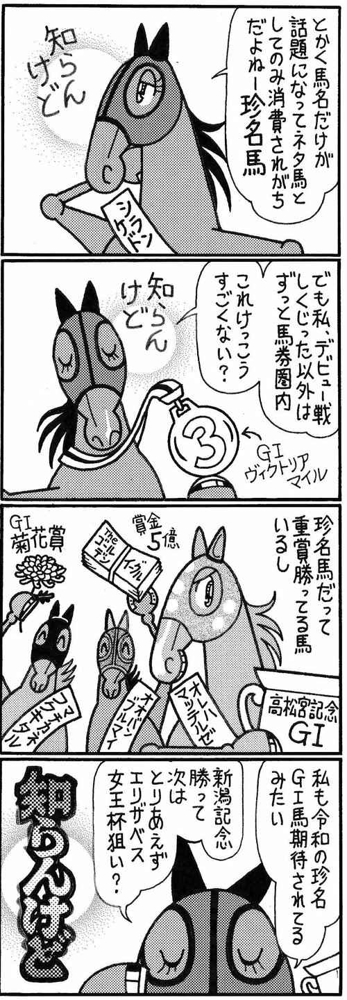 漫画 【無料漫画】競馬4コマ『馬なりde SHOW』名に恥じぬ #よしだみほ #漫画(マンガ) #4コマ漫画 #無料漫画 よしだみほ 2025.09.05 よしだみほ よしだみほ 2019年に連載1000R&最終回を迎えた『馬なり1ハロン劇場』電子版が絶賛発売中。 netkeiba.com連載中の「馬なり1ハロン!NEO」もお楽しみください。 よしだみほ よしだみほ 馬と舞台演劇を愛する競馬マンガ家。 趣味は観劇(俳優:鹿賀丈史・滝田栄推し)&キャラ惚れベースの日本史研究。 好物はお寿司とデコポン。 ポスト シェア LINEで送る