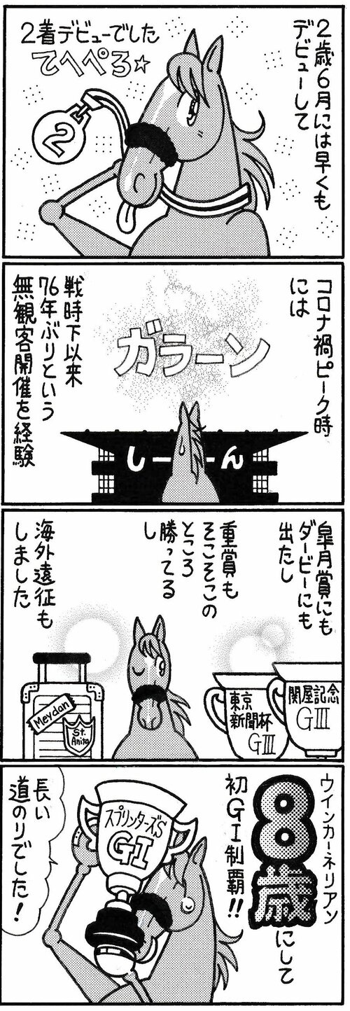漫画 【無料漫画】競馬4コマ『馬なりde SHOW』念願のGⅠ勝利✕2 #よしだみほ #漫画(マンガ) #4コマ漫画 #無料漫画 よしだみほ 2025.10.03 よしだみほ よしだみほ 2019年に連載1000R&最終回を迎えた『馬なり1ハロン劇場』電子版が絶賛発売中。 netkeiba.com連載中の「馬なり1ハロン!NEO」もお楽しみください。 よしだみほ よしだみほ 馬と舞台演劇を愛する競馬マンガ家。 趣味は観劇(俳優:鹿賀丈史・滝田栄推し)&キャラ惚れベースの日本史研究。 好物はお寿司とデコポン。 ポスト シェア LINEで送る