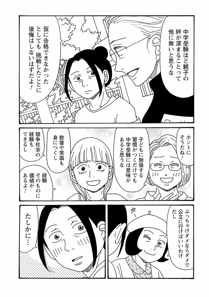 漫画 【無料漫画】『そもそもウチには芝生がない』第110話「我が子の“中学受験”に何を求める…!?」たちばなかおる (2/2ページ) 1ページ目から読む #無料漫画 #そもそもウチには芝生がない たちばなかおる 2025.10.21 ■『そもそもウチには芝生がない』過去回はこちらから読めます!■ 電子コミックス第1巻 電子コミックス最新刊14巻 ■無料で読める最新漫画はこちら 【漫画】街中で因縁を付けられ相手を撃退!でも逮捕されたのは自分のほうで… 【漫画】ぼっち高校生が、新しくできた"友だち"に巻き込まれた思わぬトラブル 【漫画】力士が一人前になるまで何円かかる?裏で動く巨大なカネを追跡 【漫画】夫に仕事の運転資金を使いこまれたので、合法的に復讐することにしました 続きはこちら! 1 2 たちばなかおる たちばなかおる 12月14日生まれのA型、東京都出身。 主な著作『九後45は一周回って追いかける』『長男・次男・三男・夫よ 早く大人になってくれ!!(震え声)』『ユンタのゆっくり成長記』など。 無料漫画『そもそもウチには芝生がない』 【無料漫画】『そもそもウチには芝生がない』“住む世界が違いすぎる”アラフォー女性がPTAで痛感したギャップとは? 【無料漫画】『そもそもウチには芝生がない』第1話「3児の育児と仕事に追われる毎日…旦那はどこよ!?」たちばなかおる 【無料漫画】『そもそもウチには芝生がない』第2話「アラフォー女性が“イタさ”に気づく瞬間…?」たちばなかおる 【無料漫画】『そもそもウチには芝生がない』第3話「同居姑の“エグイひと言”に感情が大爆発…!?」たちばなかおる 【無料漫画】『そもそもウチには芝生がない』第4話「年下男子との出会いは恋の予感!?」たちばなかおる 【無料漫画】『そもそもウチには芝生がない』第5話「40代から“いい女”ってなれますか…!?」たちばなかおる 【無料漫画】『そもそもウチには芝生がない』第6話「“不完全な関係”が夫婦円満のヒケツ…!?」たちばなかおる 【無料漫画】『そもそもウチには芝生がない』第7話「年下男の“愛情表現”に10年ぶりの胸キュン!?」たちばなかおる 【無料漫画】『そもそもウチには芝生がない』第8話「ダンナの“浮気段階”を見抜く方法とは…?」たちばなかおる 【無料漫画】『そもそもウチには芝生がない』第9話「念願プロポーズは“親同居付き”…さぁどうする!? 」たちばなかおる 【無料漫画】『そもそもウチには芝生がない』第10話「アラフォーでも“妊娠”で喜んでいいですか…!?」たちばなかおる 【無料漫画】『そもそもウチには芝生がない』第11話「男女がルームメイトって“アリ”ですか…!?」たちばなかおる 【無料漫画】『そもそもウチには芝生がない』第12話「年下男の靴下にイライラしちゃう理由とは…!?」たちばなかおる 【無料漫画】『そもそもウチには芝生がない』第13話「アラフォー女子が転機で下した“大決断”」たちばなかおる 【無料漫画】『そもそもウチには芝生がない』第14話「アラフォー女子が“優しさ”で涙をこぼす時…」たちばなかおる 【無料漫画】『そもそもウチには芝生がない』第15話「恐怖!?“マウンティング女子”の実態とは…」たちばなかおる 【無料漫画】『そもそもウチには芝生がない』第16話「やさしいママがいきなり情緒不安定に…!?」たちばなかおる 【無料漫画】『そもそもウチには芝生がない』第17話「同世代の友達が“若返って見える”瞬間って…?」たちばなかおる 【無料漫画】『そもそもウチには芝生がない』第18話「人生で味わえる一番の痛み」たちばなかおる 【無料漫画】『そもそもウチには芝生がない』第19話「思ってたより痛い!? 40代出産のリアル…」たちばなかおる 【無料漫画】『そもそもウチには芝生がない』第20話「出産直後にイラッとくる“夫の地雷発言”」たちばなかおる 【無料漫画】『そもそもウチには芝生がない』第21話「新米ママが怯える…“子育てのピーク”っていつよ!」たちばなかおる 【無料漫画】『そもそもウチには芝生がない』第22話「既読スルーに“他の女の影”を感じる瞬間って…!?」たちばなかおる 【無料漫画】『そもそもウチには芝生がない』第23話「40女の大失恋…号泣以外の傷心ケアって?」たちばなかおる 【無料漫画】『そもそもウチには芝生がない』第24話「ダンナは“人生で一番好きな人”じゃない…!?」たちばなかおる 【無料漫画】『そもそもウチには芝生がない』第25話「カレに“運命”を感じる瞬間って…?」たちばなかおる 【無料漫画】『そもそもウチには芝生がない』第26話「元カレからメールって、どう返すのが正解なの…!?」たちばなかおる 【無料漫画】『そもそもウチには芝生がない』第27話「思い出の元カレから突然のお誘い…どうする!?」たちばなかおる 【無料漫画】『そもそもウチには芝生がない』第28話「若い頃の元カレが超イケオジ化してたら…?」たちばなかおる 【無料漫画】『そもそもウチには芝生がない』第29話「元彼の衝撃告白に…涙腺崩壊!」たちばなかおる 