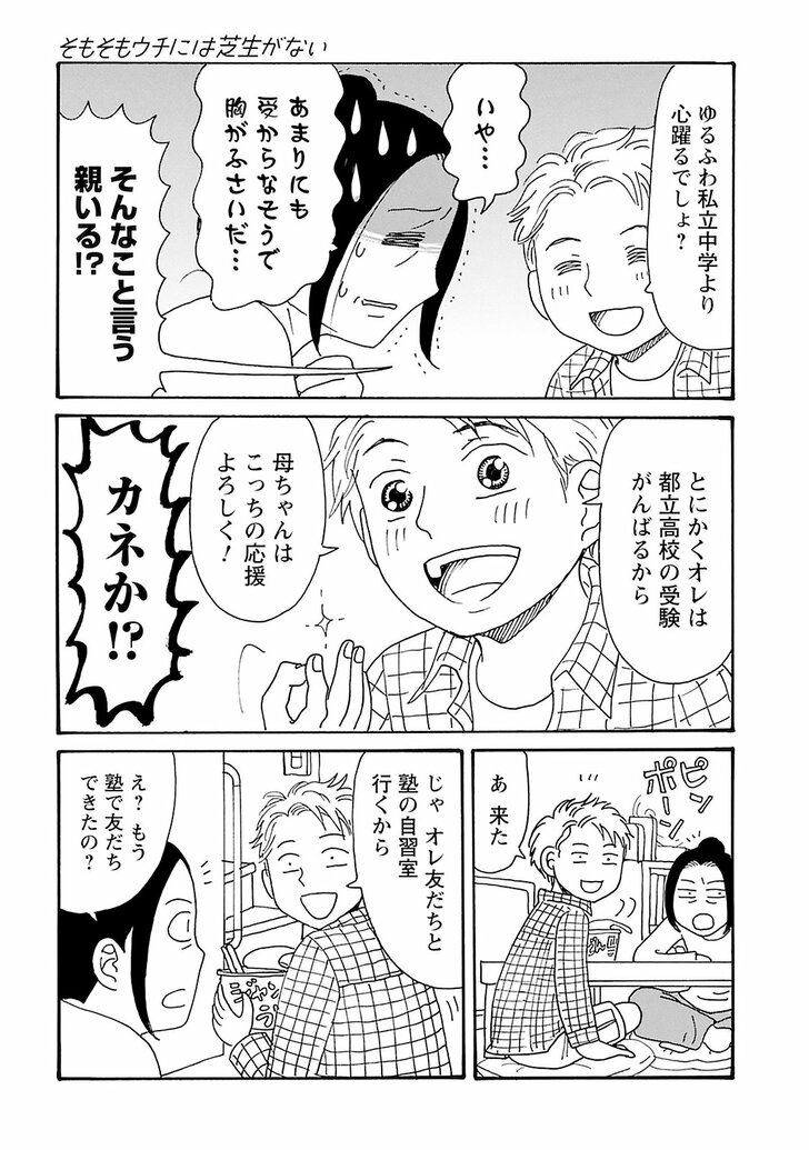 漫画 【無料漫画】『そもそもウチには芝生がない』第111話「子どもに教わる“中学受験のリアル”…」たちばなかおる (2/2ページ) 1ページ目から読む #無料漫画 #そもそもウチには芝生がない たちばなかおる 2025.10.24 ■『そもそもウチには芝生がない』過去回はこちらから読めます!■ 電子コミックス第1巻 電子コミックス最新刊14巻 ■無料で読める最新漫画はこちら 【漫画】街中で因縁を付けられ相手を撃退!でも逮捕されたのは自分のほうで… 【漫画】ぼっち高校生が、新しくできた"友だち"に巻き込まれた思わぬトラブル 【漫画】力士が一人前になるまで何円かかる?裏で動く巨大なカネを追跡 【漫画】夫に仕事の運転資金を使いこまれたので、合法的に復讐することにしました 1 2 たちばなかおる たちばなかおる 12月14日生まれのA型、東京都出身。 主な著作『九後45は一周回って追いかける』『長男・次男・三男・夫よ 早く大人になってくれ!!(震え声)』『ユンタのゆっくり成長記』など。 無料漫画『そもそもウチには芝生がない』 【無料漫画】『そもそもウチには芝生がない』“住む世界が違いすぎる”アラフォー女性がPTAで痛感したギャップとは? 【無料漫画】『そもそもウチには芝生がない』第1話「3児の育児と仕事に追われる毎日…旦那はどこよ!?」たちばなかおる 【無料漫画】『そもそもウチには芝生がない』第2話「アラフォー女性が“イタさ”に気づく瞬間…?」たちばなかおる 【無料漫画】『そもそもウチには芝生がない』第3話「同居姑の“エグイひと言”に感情が大爆発…!?」たちばなかおる 【無料漫画】『そもそもウチには芝生がない』第4話「年下男子との出会いは恋の予感!?」たちばなかおる 【無料漫画】『そもそもウチには芝生がない』第5話「40代から“いい女”ってなれますか…!?」たちばなかおる 【無料漫画】『そもそもウチには芝生がない』第6話「“不完全な関係”が夫婦円満のヒケツ…!?」たちばなかおる 【無料漫画】『そもそもウチには芝生がない』第7話「年下男の“愛情表現”に10年ぶりの胸キュン!?」たちばなかおる 【無料漫画】『そもそもウチには芝生がない』第8話「ダンナの“浮気段階”を見抜く方法とは…?」たちばなかおる 【無料漫画】『そもそもウチには芝生がない』第9話「念願プロポーズは“親同居付き”…さぁどうする!? 」たちばなかおる 【無料漫画】『そもそもウチには芝生がない』第10話「アラフォーでも“妊娠”で喜んでいいですか…!?」たちばなかおる 【無料漫画】『そもそもウチには芝生がない』第11話「男女がルームメイトって“アリ”ですか…!?」たちばなかおる 【無料漫画】『そもそもウチには芝生がない』第12話「年下男の靴下にイライラしちゃう理由とは…!?」たちばなかおる 【無料漫画】『そもそもウチには芝生がない』第13話「アラフォー女子が転機で下した“大決断”」たちばなかおる 【無料漫画】『そもそもウチには芝生がない』第14話「アラフォー女子が“優しさ”で涙をこぼす時…」たちばなかおる 【無料漫画】『そもそもウチには芝生がない』第15話「恐怖!?“マウンティング女子”の実態とは…」たちばなかおる 【無料漫画】『そもそもウチには芝生がない』第16話「やさしいママがいきなり情緒不安定に…!?」たちばなかおる 【無料漫画】『そもそもウチには芝生がない』第17話「同世代の友達が“若返って見える”瞬間って…?」たちばなかおる 【無料漫画】『そもそもウチには芝生がない』第18話「人生で味わえる一番の痛み」たちばなかおる 【無料漫画】『そもそもウチには芝生がない』第19話「思ってたより痛い!? 40代出産のリアル…」たちばなかおる 【無料漫画】『そもそもウチには芝生がない』第20話「出産直後にイラッとくる“夫の地雷発言”」たちばなかおる 【無料漫画】『そもそもウチには芝生がない』第21話「新米ママが怯える…“子育てのピーク”っていつよ!」たちばなかおる 【無料漫画】『そもそもウチには芝生がない』第22話「既読スルーに“他の女の影”を感じる瞬間って…!?」たちばなかおる 【無料漫画】『そもそもウチには芝生がない』第23話「40女の大失恋…号泣以外の傷心ケアって?」たちばなかおる 【無料漫画】『そもそもウチには芝生がない』第24話「ダンナは“人生で一番好きな人”じゃない…!?」たちばなかおる 【無料漫画】『そもそもウチには芝生がない』第25話「カレに“運命”を感じる瞬間って…?」たちばなかおる 【無料漫画】『そもそもウチには芝生がない』第26話「元カレからメールって、どう返すのが正解なの…!?」たちばなかおる 【無料漫画】『そもそもウチには芝生がない』第27話「思い出の元カレから突然のお誘い…どうする!?」たちばなかおる 【無料漫画】『そもそもウチには芝生がない』第28話「若い頃の元カレが超イケオジ化してたら…?」たちばなかおる 【無料漫画】『そもそもウチには芝生がない』第29話「元彼の衝撃告白に…涙腺崩壊!」たちばなかおる 【無料漫画】