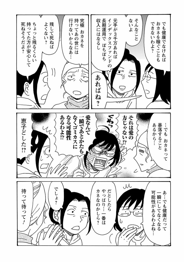 漫画 【無料漫画】『そもそもウチには芝生がない』第113話「愛とお金と健康…どれか一つを選ぶなら?」たちばなかおる (2/2ページ) 1ページ目から読む #無料漫画 #そもそもウチには芝生がない たちばなかおる 2025.10.31 ■『そもそもウチには芝生がない』過去回はこちらから読めます!■ 電子コミックス第1巻 電子コミックス最新刊14巻 ■無料で読める最新漫画はこちら 【漫画】街中で因縁を付けられ相手を撃退!でも逮捕されたのは自分のほうで… 【漫画】ぼっち高校生が、新しくできた"友だち"に巻き込まれた思わぬトラブル 【漫画】力士が一人前になるまで何円かかる?裏で動く巨大なカネを追跡 【漫画】夫に仕事の運転資金を使いこまれたので、合法的に復讐することにしました 続きはこちら! 1 2 たちばなかおる たちばなかおる 12月14日生まれのA型、東京都出身。 主な著作『九後45は一周回って追いかける』『長男・次男・三男・夫よ 早く大人になってくれ!!(震え声)』『ユンタのゆっくり成長記』など。 無料漫画『そもそもウチには芝生がない』 【無料漫画】『そもそもウチには芝生がない』“住む世界が違いすぎる”アラフォー女性がPTAで痛感したギャップとは? 【無料漫画】『そもそもウチには芝生がない』第1話「3児の育児と仕事に追われる毎日…旦那はどこよ!?」たちばなかおる 【無料漫画】『そもそもウチには芝生がない』第2話「アラフォー女性が“イタさ”に気づく瞬間…?」たちばなかおる 【無料漫画】『そもそもウチには芝生がない』第3話「同居姑の“エグイひと言”に感情が大爆発…!?」たちばなかおる 【無料漫画】『そもそもウチには芝生がない』第4話「年下男子との出会いは恋の予感!?」たちばなかおる 【無料漫画】『そもそもウチには芝生がない』第5話「40代から“いい女”ってなれますか…!?」たちばなかおる 【無料漫画】『そもそもウチには芝生がない』第6話「“不完全な関係”が夫婦円満のヒケツ…!?」たちばなかおる 【無料漫画】『そもそもウチには芝生がない』第7話「年下男の“愛情表現”に10年ぶりの胸キュン!?」たちばなかおる 【無料漫画】『そもそもウチには芝生がない』第8話「ダンナの“浮気段階”を見抜く方法とは…?」たちばなかおる 【無料漫画】『そもそもウチには芝生がない』第9話「念願プロポーズは“親同居付き”…さぁどうする!? 」たちばなかおる 【無料漫画】『そもそもウチには芝生がない』第10話「アラフォーでも“妊娠”で喜んでいいですか…!?」たちばなかおる 【無料漫画】『そもそもウチには芝生がない』第11話「男女がルームメイトって“アリ”ですか…!?」たちばなかおる 【無料漫画】『そもそもウチには芝生がない』第12話「年下男の靴下にイライラしちゃう理由とは…!?」たちばなかおる 【無料漫画】『そもそもウチには芝生がない』第13話「アラフォー女子が転機で下した“大決断”」たちばなかおる 【無料漫画】『そもそもウチには芝生がない』第14話「アラフォー女子が“優しさ”で涙をこぼす時…」たちばなかおる 【無料漫画】『そもそもウチには芝生がない』第15話「恐怖!?“マウンティング女子”の実態とは…」たちばなかおる 【無料漫画】『そもそもウチには芝生がない』第16話「やさしいママがいきなり情緒不安定に…!?」たちばなかおる 【無料漫画】『そもそもウチには芝生がない』第17話「同世代の友達が“若返って見える”瞬間って…?」たちばなかおる 【無料漫画】『そもそもウチには芝生がない』第18話「人生で味わえる一番の痛み」たちばなかおる 【無料漫画】『そもそもウチには芝生がない』第19話「思ってたより痛い!? 40代出産のリアル…」たちばなかおる 【無料漫画】『そもそもウチには芝生がない』第20話「出産直後にイラッとくる“夫の地雷発言”」たちばなかおる 【無料漫画】『そもそもウチには芝生がない』第21話「新米ママが怯える…“子育てのピーク”っていつよ!」たちばなかおる 【無料漫画】『そもそもウチには芝生がない』第22話「既読スルーに“他の女の影”を感じる瞬間って…!?」たちばなかおる 【無料漫画】『そもそもウチには芝生がない』第23話「40女の大失恋…号泣以外の傷心ケアって?」たちばなかおる 【無料漫画】『そもそもウチには芝生がない』第24話「ダンナは“人生で一番好きな人”じゃない…!?」たちばなかおる 【無料漫画】『そもそもウチには芝生がない』第25話「カレに“運命”を感じる瞬間って…?」たちばなかおる 【無料漫画】『そもそもウチには芝生がない』第26話「元カレからメールって、どう返すのが正解なの…!?」たちばなかおる 【無料漫画】『そもそもウチには芝生がない』第27話「思い出の元カレから突然のお誘い…どうする!?」たちばなかおる 【無料漫画】『そもそもウチには芝生がない』第28話「若い頃の元カレが超イケオジ化してたら…?」たちばなかおる 【無料漫画】『そもそもウチには芝生がない』第29話「元彼の衝撃告白に…涙腺崩壊!」たちばなかおる