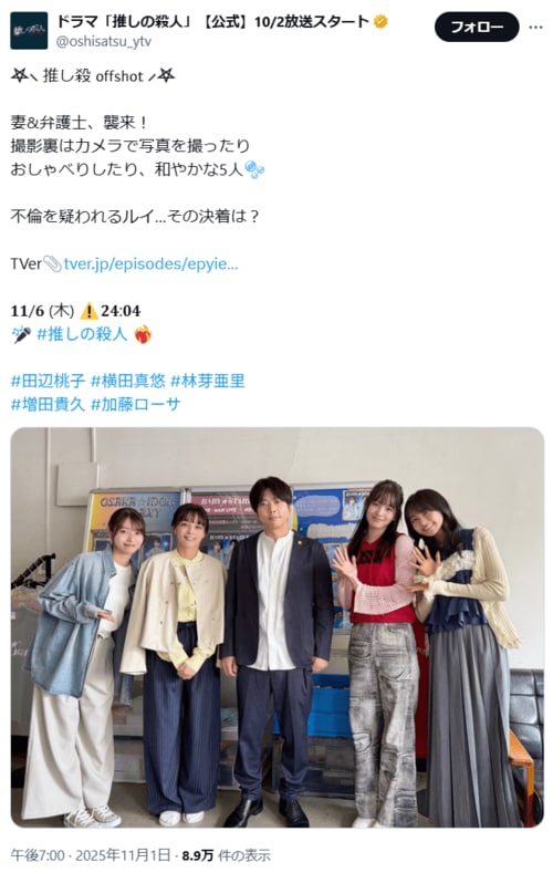 その他 ドラマ『推しの殺人』オリジナル展開のカギ?いい人キャラ「増田貴久」の気になる立ち位置 (2/2ページ) 1ページ目から読む #増田貴久 蒼影コウ 2025.11.06 ■【画像】ただの“いい人”では終わらない…!?『推しの殺人』今後の活躍が気になる増田貴久さん ※画像は2025年に投稿されたドラマ「推しの殺人」【公式】10/2放送スタート「@oshisatsu_ytv」のポストより -画像の記事に戻る- 1 2 あおかげ・こう 蒼影コウ 雑誌&ウェブライター/編集者、大手出版社で男性週刊誌、月刊アイドル誌、グラビアアイドル誌、ウェブメディアの編集長を経てフリー。現在はエンタメ・芸能サイトを中心にドラマ、映画、アニメ記事を執筆中。漫画オタクで月に26誌チェックする時間を作るのに悪戦苦闘中。我が心の一冊は『めぞん一刻』。 ポスト シェア LINEで送る