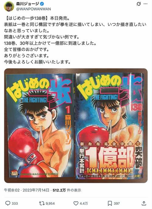 漫画 あわや眼球脱臼!? 『はじめの一歩』絶対に受けたくない「恐怖の必殺ブロー」幕之内一歩の“デンプシー・ロール”に鴨川源二の“鉄拳”、宮田一郎“JOLT”も… (3/3ページ) 1ページ目から読む #森川ジョージ #はじめの一歩 ハチミツ 2025.11.23 ■【画像】「言われてみたら確かに!」なんと“拳を逆”に描いていた!? 『はじめの一歩』コミックス1巻の表紙 ※森川ジョージ公式X(@WANPOWANWAN)のポストより -画像の記事に戻る- 1 2 3 はちみつ ハチミツ 令和に入って初めて『ジョジョの奇妙な冒険』を読んだらどハマりしたWEBライター。ライター業で培った文章力を漫画感想文に費やすのが趣味。 @sukideha_nai ポスト シェア LINEで送る