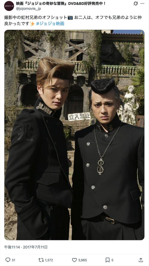 その他 身体張りすぎ! 『ジョジョの奇妙な冒険』新田真剣佑に『東京卍リベンジャーズ』山田裕貴も…漫画キャラのとんでもない髪型を「地毛で完璧再現」した俳優たち (3/3ページ) 1ページ目から読む #荒木飛呂彦 #ジョジョの奇妙な冒険 #実写化 #新田真剣佑 #西森博之 #今日から俺は!! #和久井健 #東京リベンジャーズ #山田裕貴 創也慎介 2025.11.28 ■【画像】「これほんとに地毛なの!?」リーゼントにモヒカンも…ありえないキャラの髪型を完全再現したイケメン俳優たち ※映画『ジョジョの奇妙な冒険』DVD&BD好評発売中!公式X(@jojomovie_jp)のポストより ※アンク@金曜ロードショー公式X(@kinro_ntv)のポストより ※山田裕貴公式X(@00_yuki_Y)のポストより -画像の記事に戻る- 1 2 3 つくりやしんすけ 創也慎介 岡山県出身。現在は千葉で1児の父として奮闘するかたわら、作家、物書きを目指して進む毎日。幼少期から現在まで『ジョジョの奇妙な冒険』を愛読。アクション、バトル、ホラーなどのサブカルを好む。 Twitter:@tsukuriya0000 ポスト シェア LINEで送る