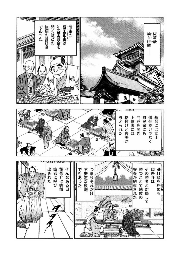 物語の舞台は江戸末期。佐倉藩で碁打頭を務める三枝翔吾介(現代アマ四・五段)とその妻さなえ(プロ級の実力)は、囲碁の才能のある長男の天碁、長女の弥生とともに、幸せな日々を送っていた。そんなある日、家老に呼び出された翔吾介が、水戸藩と利権がらみの対局で“一目負け”する、という難題を申しつけられ――