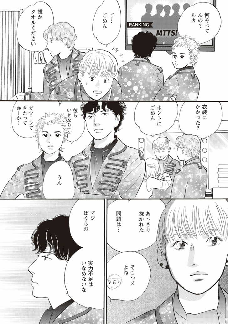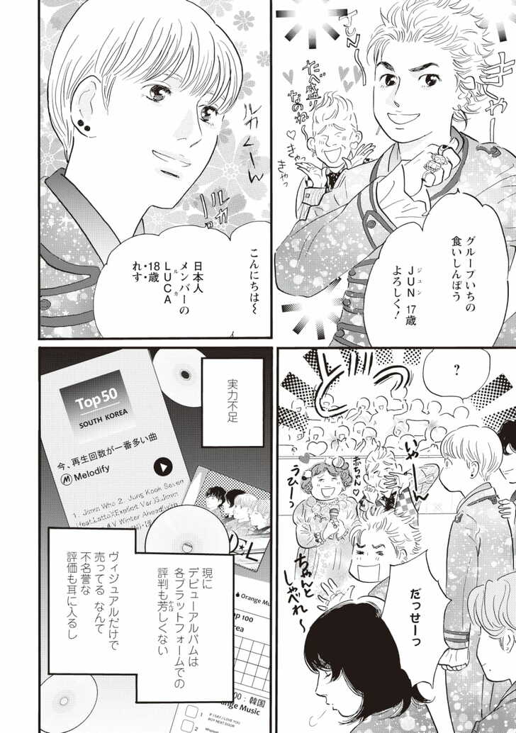 しかしソンジュンは、デビューを待たずに突然姿を消す。2年後、喪失感を拭えぬままデビューを果たしたルカの前に現れた、ライバルグループのジュノ。彼の声はルカが知るソンジュンの声で……。抗えない宿命と、芸能業界のダークサイドによって引き裂かれた2人の未来は――!?