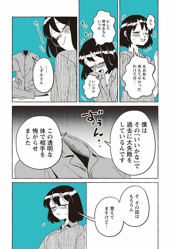 漫画 【無料漫画】ドキドキの同棲生活で進展が…?『透明男と人間女~そのうち夫婦になるふたり~』 (2/2ページ) 1ページ目から読む #無料漫画 岩飛猫 2025.12.26 この続きは、コミックスにてお楽しみください ■無料で読める最新漫画はこちら 【漫画】自分の名前でSNSに炎上投稿が!職場や街中で巻き込まれた「最悪の事態」が壮絶すぎ 【漫画】幼少期ひどい目に遭った地元。二度と戻るまいと決意するも、突然の辞令で引っ越し 【漫画】「言えない秘密」を抱える意中の相手とハラハラの"おうちデート"で赤っ恥 【漫画】交際相手が既婚者と判明、家に押しかけてきた「意外な人」がもたらした"修羅場" 【漫画】自分より背の高い女の子はイヤ?好きな相手を必ず捕まえる!小学生が驚きの作戦を考案 1 2 いわとびねこ 岩飛猫 代表作『透明男と人間女~そのうち夫婦になるふたり~』2026年1月~TVアニメ化。『そいね屋本舗』『お嬢と七匹の犬』『伊藤くんは恋を知らない。』『純潔乙女とユニコーン』『満たしてケルベロス』『人間のいない国』他。JOURにて『狐面夫婦』、COMICポラリスにて『片白の医端者』連載中。異形をこよなく愛し、人外・異種間ジャンルを主戦場に活躍中。 Xアカウント:@iwawotobuneko ポスト シェア LINEで送る