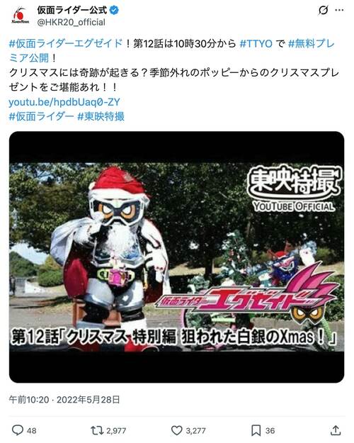その他 平成『仮面ライダー』笑顔も消える「伝説のクリスマス回」 聖夜には「予測不能の悲劇」が定番…!? 『アギト』、『響鬼』に『エグゼイド』も… (3/3ページ) 1ページ目から読む #特撮 #仮面ライダー 海狸こう平 2025.12.24 ■【画像】「なんてシュール…」怪人もサンタ仕様に!?『仮面ライダー』伝説のクリスマス回 ※仮面ライダー公式X(@HKR20_official)のポストより -画像の記事に戻る- 1 2 3 かいりこうへい 海狸こう平 アニメ製作会社を経てフリーライターに。『コロコロコミック』『少年ジャンプ』の漫画やアニメを見て育つ。モットーは「広く浅く、ときどき潜る。」 ポスト シェア LINEで送る