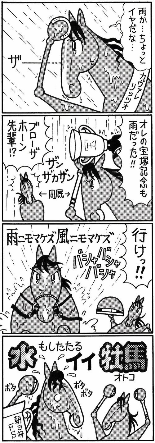 漫画 【無料漫画】競馬4コマ『馬なりde SHOW』雨の曲馬師 #よしだみほ #漫画(マンガ) #4コマ漫画 #無料漫画 よしだみほ 2025.12.26 よしだみほ よしだみほ 2019年に連載1000R&最終回を迎えた『馬なり1ハロン劇場』電子版が絶賛発売中。 netkeiba.com連載中の「馬なり1ハロン!NEO」もお楽しみください。 よしだみほ よしだみほ 馬と舞台演劇を愛する競馬マンガ家。 趣味は観劇(俳優:鹿賀丈史・滝田栄推し)&キャラ惚れベースの日本史研究。 好物はお寿司とデコポン。 ポスト シェア LINEで送る