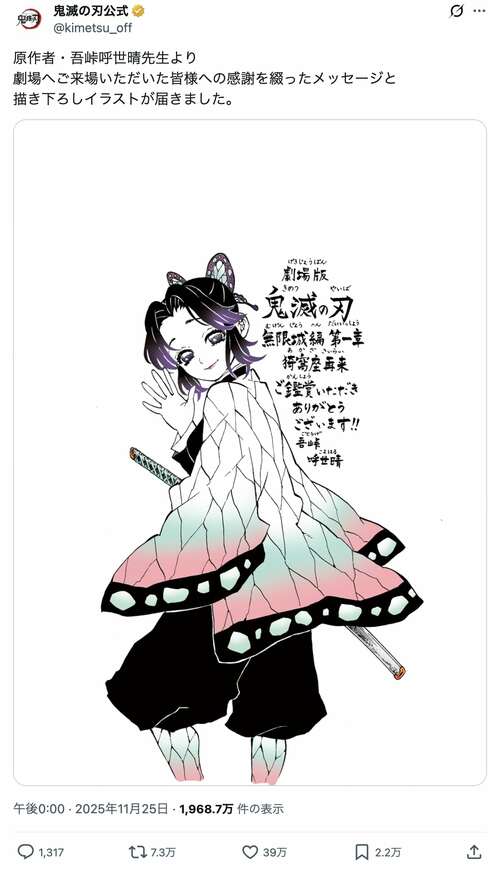 アニメ 劇場版『鬼滅の刃 無限城編 第一章 猗窩座再来』ゴールデン・グローブ賞“ノミネート”だけでも「快挙」とされるワケ (2/2ページ) 1ページ目から読む #鬼滅の刃 #吾峠呼世晴 蒼影コウ 2026.01.07 ■【画像】「しのぶのこんな顔見たことない!」『鬼滅の刃』吾峠呼世晴さんの「最新描き下ろしイラスト」 ※鬼滅の刃公式X(@kimetsu_off)のポストより -画像の記事に戻る- 1 2 あおかげ・こう 蒼影コウ 雑誌&ウェブライター/編集者、大手出版社で男性週刊誌、月刊アイドル誌、グラビアアイドル誌、ウェブメディアの編集長を経てフリー。現在はエンタメ・芸能サイトを中心にドラマ、映画、アニメ記事を執筆中。漫画オタクで月に26誌チェックする時間を作るのに悪戦苦闘中。我が心の一冊は『めぞん一刻』。 ポスト シェア LINEで送る