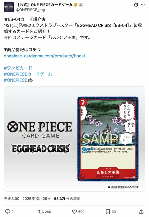 漫画 存在すら“なかったこと”に…『ONE PIECE』世界政府によって「国や島が消えた大事件」オハラにフレバンス王国、ルルシア王国も… (3/3ページ) 1ページ目から読む #ONEPIECE #尾田栄一郎 #週刊少年ジャンプ ハチミツ 2026.02.06 ■【画像】「このあととんでもない惨劇が…」『ONE PIECE』世界政府によって消滅させられた「ルルシア王国」 ※【公式】ONE PIECEカードゲームX(@ONEPIECE_tcg)のポストより -画像の記事に戻る- 1 2 3 はちみつ ハチミツ 令和に入って初めて『ジョジョの奇妙な冒険』を読んだらどハマりしたWEBライター。ライター業で培った文章力を漫画感想文に費やすのが趣味。 @sukideha_nai ポスト シェア LINEで送る