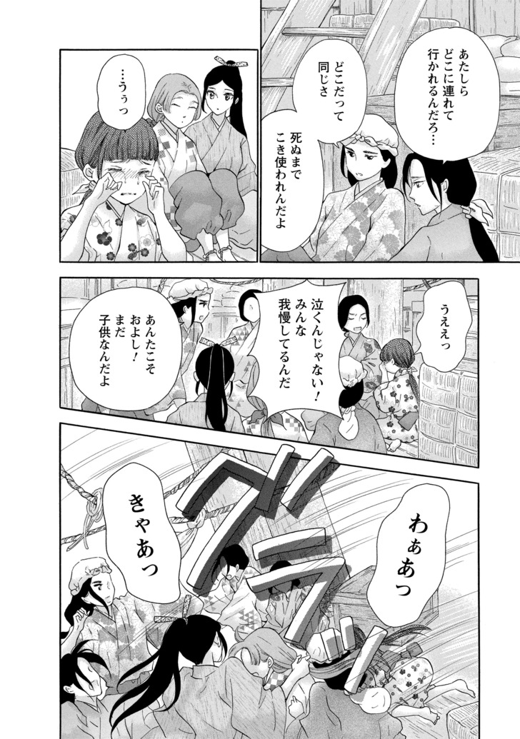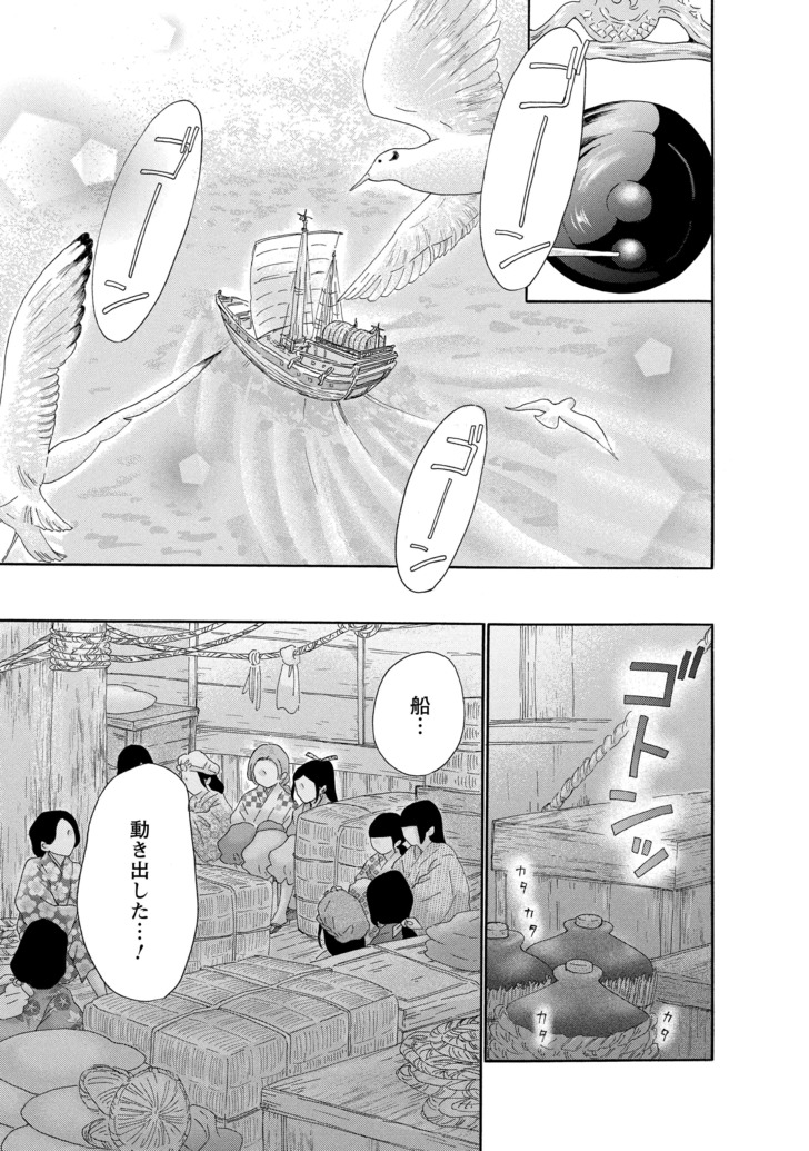 やがてたどり着いた異国の地・天川で、ドラは幼馴染の五平太と再会する。彼から「嫁にしたい」という真っ直ぐすぎる想いをぶつけられた彼女は……。