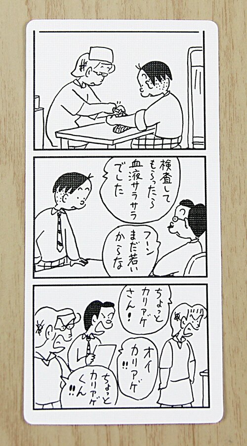 4コマの巨匠・植田まさしが送るサラリーマンギャグ漫画の名作『かりあげクン』。本作をモチーフとした新感覚カルタゲーム『オチカルタ かりあげクン』を使ったクイズに挑戦!