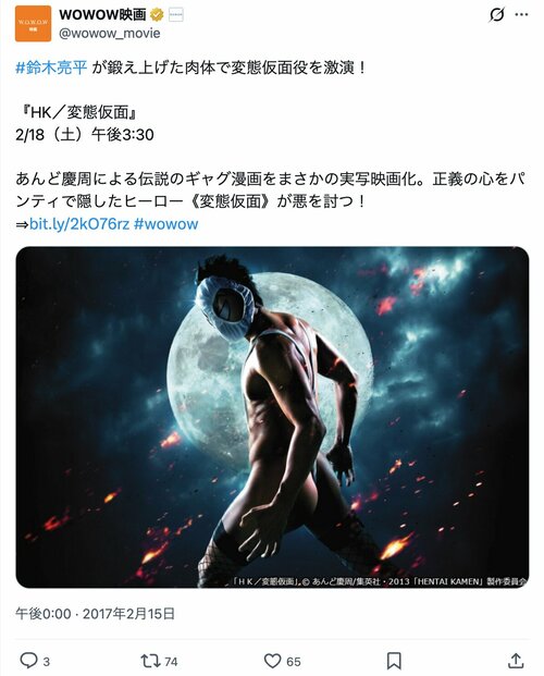 漫画 同じ人とは思えない!『HK/変態仮面』に『天皇の料理番』、『俺物語!!』に『シティーハンター』まで…カメレオン俳優「鈴木亮平の七変化」を追ってみた (3/3ページ) 1ページ目から読む #鈴木亮平 #あんど慶周 #週刊少年ジャンプ #連続テレビ小説 #花子とアン #吉高由里子 #佐藤健 #大河ドラマ #西郷どん #Netflix #シティーハンター #北条司 海狸こう平 2026.02.22 ■【画像5枚】「本当に同じ人!?」時系列に見るとより凄い…! 鈴木亮平さんの七変化 ※WOWOW映画公式X(@wowow_movie)のポストより ※鈴木亮平公式X(@ryoheiheisuzuki)のポストより ※鈴木亮平公式X(@ryoheiheisuzuki)のポストより ※鈴木亮平公式X(@ryoheiheisuzuki)のポストより ※鈴木亮平公式X(@ryoheiheisuzuki)のポストより ■Blu-rayをAmazonで購入 『HK/変態仮面』 [DVD] -画像の記事に戻る- 1 2 3 かいりこうへい 海狸こう平 アニメ製作会社を経てフリーライターに。『コロコロコミック』『少年ジャンプ』の漫画やアニメを見て育つ。モットーは「広く浅く、ときどき潜る。」 ポスト シェア LINEで送る