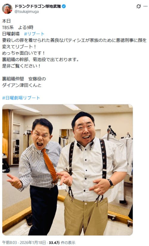 鈴木亮平主演ドラマ『リブート』、第一章の核となる事件「10億強奪」&「100億強奪」を再整理して見えてくるもの (2/2ページ) 1ページ目から読む #鈴木亮平 #松山ケンイチ #戸田恵梨香 すがり 2026.03.08 ■【画像】今後の鍵かも…!?『リブート』「正体不明の幹部」の怪しい笑顔 ※画像は2026年に投稿されたドランクドラゴン塚地武雅「@tsukajimuga」のポストより -画像の記事に戻る- 1 2 すがり すがり 生まれも育ちも愛知県。物心ついたときからとにかく読書が好きで、小説に漫画、エッセイなど、気になるものならなんでも読む。本を読む時間を最優先したいがためにフリーライターになった。 ポスト シェア LINEで送る
