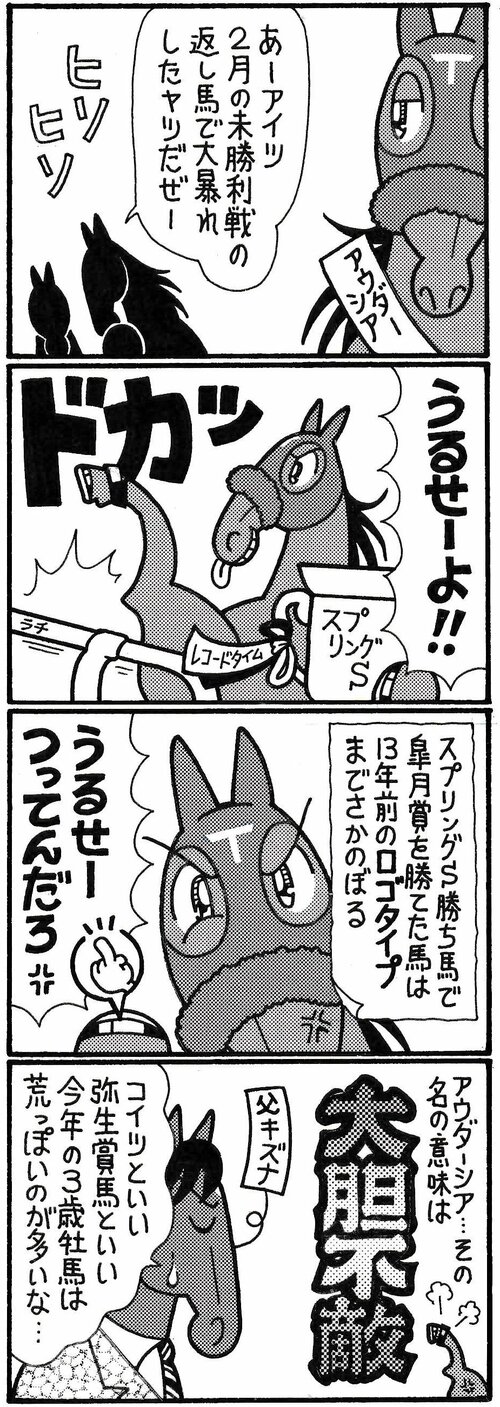 漫画 【無料漫画】競馬4コマ『馬なりde SHOW』気性を活かす #よしだみほ #漫画(マンガ) #4コマ漫画 #無料漫画 よしだみほ 2026.03.20 よしだみほ よしだみほ 2019年に連載1000R&最終回を迎えた『馬なり1ハロン劇場』電子版が絶賛発売中。 netkeiba.com連載中の「馬なり1ハロン!NEO」もお楽しみください。 よしだみほ よしだみほ 馬と舞台演劇を愛する競馬マンガ家。 趣味は観劇(俳優:鹿賀丈史・滝田栄推し)&キャラ惚れベースの日本史研究。 好物はお寿司とデコポン。 ポスト シェア LINEで送る