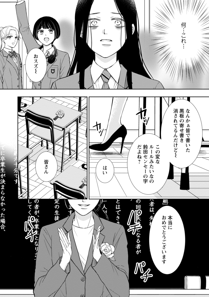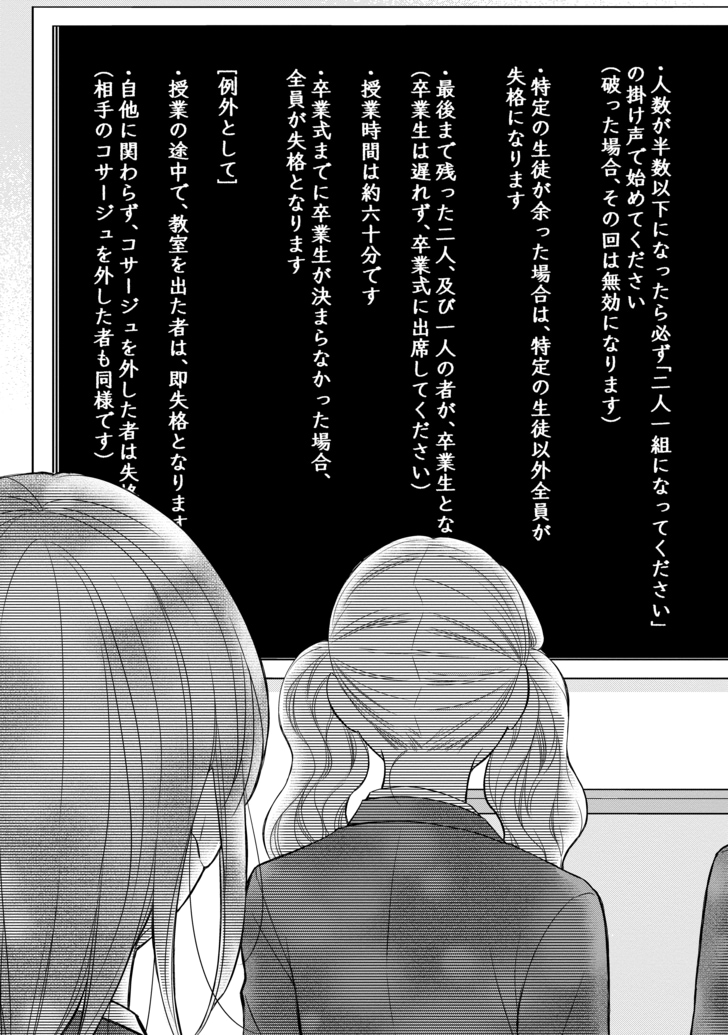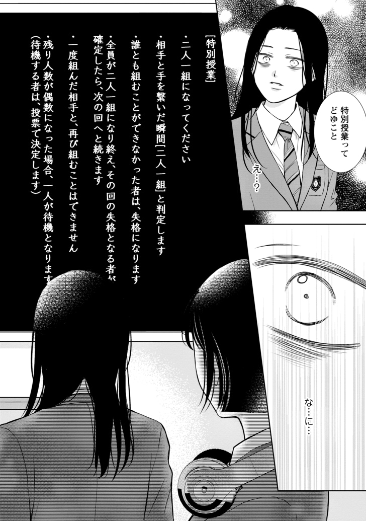 【無料漫画】あなたに本当の友達はいる?女子校デスゲーム『二人一組になってください』 (6/6ページ) 1ページ目から読む #無料漫画 月島綾 木爾チレン 2026.03.31 この続きは、コミックスにてお楽しみください ■コミックスをAmazonで購入 『二人一組になってください』 購入はこちらから ■無料で読める最新漫画はこちら 【漫画】地上げに悩む店主を救った「ドジすぎる同僚イケメンの裏の顔」 【漫画】不倫と後輩いびりで憂さ晴らし。みんな私とは格が違うと思っていた 【漫画】汚部屋に見知らぬ男を連れ込んだら予想だにしない展開が待っていた 【漫画】障子の穴から異世界に!失業中に人生を変えたスマホ検索 【漫画】同棲中の彼氏にお小遣いを渡し…自分は幸せなはずと言い聞かせる 【漫画】出産直後に母が来襲「要領悪いのは誰に似たのか」厳しい言葉に絶望 【漫画】愛のない結婚でどうでもいいはずなのに相手が気になってザワザワする 【漫画】一仕事終えた後の体がとろけそうな「ウマすぎるご褒美」とは 【漫画】奥手な彼が見せた大胆アプローチに赤面が止まらない! 1 2 3 4 5 6 つきしまあや 月島綾 東海地方在住。2007年漫画家デビュー。コミカライズを担当した『Perfect Crime』(原作・梨里緒)はTVドラマ化。 近著に『unlock』(原作・彩)など。趣味は仕事終わりの映画鑑賞とゲーム。 Xアカウント「@tukisimaaya」 きなちれん 木爾チレン 1987年京都府生まれ。2009年、大学在学中に執筆した短編小説「溶けたらしぼんだ。」で「第9回女による女のためのR-18文学賞」優秀賞を受賞。12年に『静電気と、未夜子の無意識。』でデビュー。21年に『みんな蛍を殺したかった』が話題となり、24年に刊行した女子高デスゲーム小説『二人一組になってください』が14万部を超える大ヒット。 ポスト シェア LINEで送る