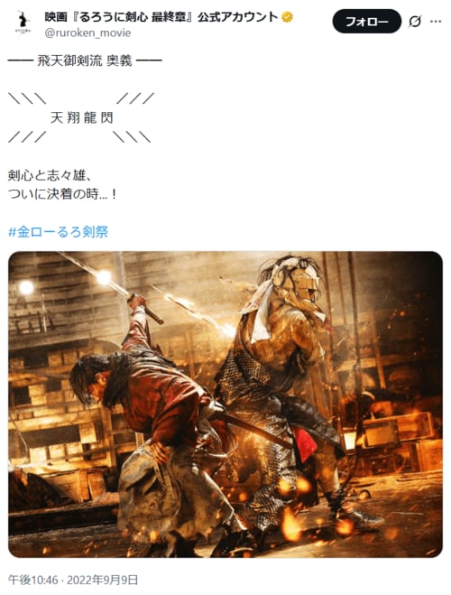 ※画像は2022年に投稿された映画『るろうに剣心』公式アカウント「@ruroken_movie」のポストより