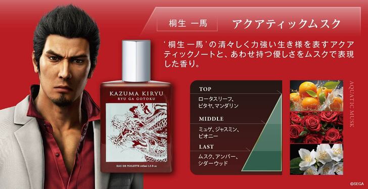 ゲーム 『龍が如く』桐生一馬&峯義孝のコラボ香水が発売開始 「一度は香ってみたい」発売前から大きな注目 (2/2ページ) 1ページ目から読む #龍が如く ふたまん+編集部 2026.04.04 【画像】『龍が如く』桐生一馬と峯義孝、家に置きたいオシャレなボトルデザインの香水 桐生一馬をイメージしたフレグランス。ボトルデザインにも注目だ ⓒSEGA 峯義孝をイメージしたフレグランス。ボトル本体は黒でクールな印象 ⓒSEGA ■『龍が如く』シリーズ最新作『龍が如く 極3 / 龍が如く3外伝 Dark Ties』をAmazonでチェック! 龍が如く 極3 / 龍が如く3外伝 Dark Ties 【早期購入特典】DLC「ツッパリメンバー 春日一番」 同梱 【Amazon.co.jp限定】オリジナル壁紙 配信 - Switch2 1 2 ふたまんぷらすへんしゅうぶ ふたまん+編集部 マンガ+アニメ+ゲームをたっぷりどっぷり!双葉社のポップカルチャー情報サイト。 「読んで楽しい、知ってうれしい」をキーワードに、ライトユーザーでもコアユーザーでも楽しめるコンテンツを毎日発信!! X:@futamanplus facebook:@futamanplus ポスト シェア LINEで送る