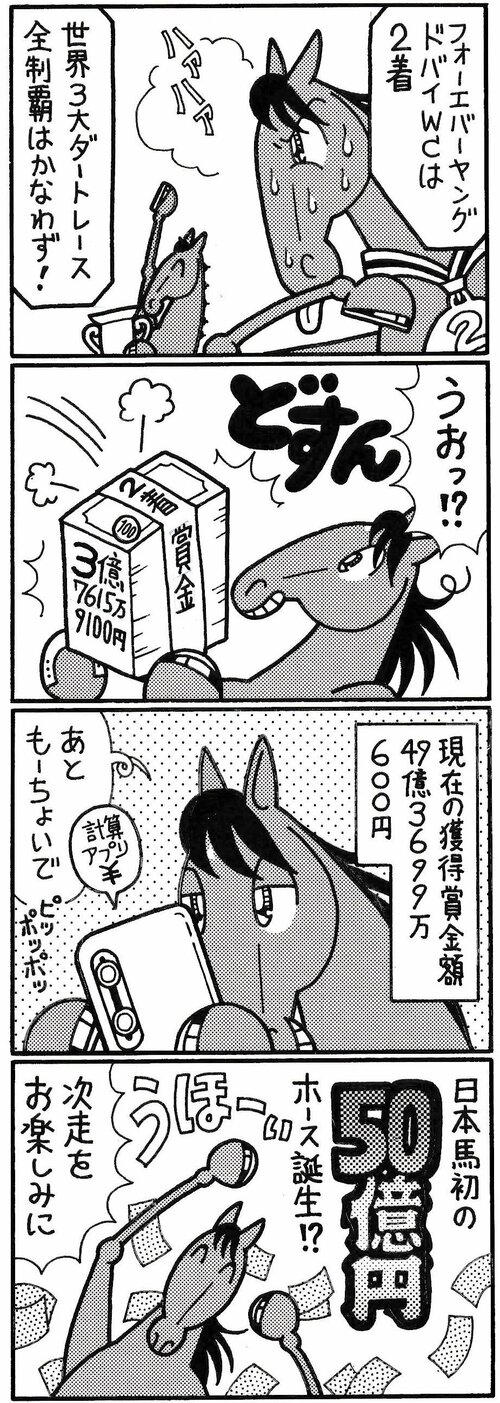 無料コミック 【無料漫画】競馬4コマ『馬なりde SHOW』日本馬史上初 #よしだみほ #漫画(マンガ) #4コマ漫画 #無料漫画 よしだみほ 2026.04.03 よしだみほ よしだみほ 2019年に連載1000R&最終回を迎えた『馬なり1ハロン劇場』電子版が絶賛発売中。 netkeiba.com連載中の「馬なり1ハロン!NEO」もお楽しみください。 よしだみほ よしだみほ 馬と舞台演劇を愛する競馬マンガ家。 趣味は観劇(俳優:鹿賀丈史・滝田栄推し)&キャラ惚れベースの日本史研究。 好物はお寿司とデコポン。 ポスト シェア LINEで送る