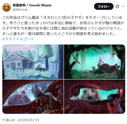 アニメ 可愛いだけじゃ終わらない…!? 異才・見里朝希監督が手掛ける春アニメのダークホース『キャンディーカリエス』 (2/2ページ) 1ページ目から読む #アニメ 折田マカダミア 2026.04.15 ■【画像】「ほんとにモルカーの人の作品…!?」不気味でダークな“閲覧注意アニメ” ※画像は2020年に投稿された見里朝希 / Tomoki Misato「@Mitotoki」のポストより -画像の記事に戻る- 1 2 おりたまかだみあ 折田マカダミア 週刊誌編集を経てフリーライターに。物心がつく前から『りぼん』『なかよし』『ちゃお』を読み、『ジャンプ』『ガンガン』『花とゆめ』で育った人生の半分以上オタク。基本的には広く浅く、好きになったら深く深く深くの精神で、アプリや舞台にも手を出しています。 ポスト シェア LINEで送る