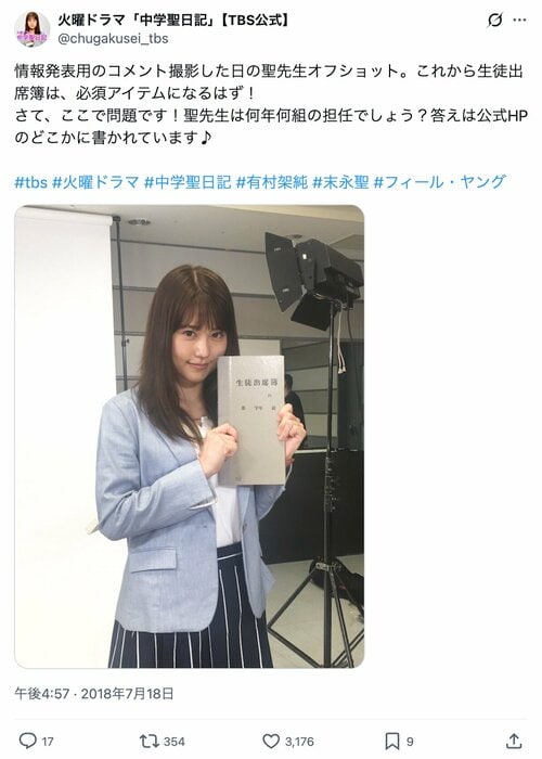 ドラマ映画 【実写化作品「可愛すぎる先生」2】有村架純「禁断の恋」に落ちる美貌の教師、清楚で真面目…でも危うい『中学聖日記』末永聖 (2/2ページ) 1ページ目から読む #有村架純 #中学聖日記 #岡田健史 #実写化 海狸こう平 2026.04.19 ■【画像】「これは好きになる…」無防備な魅力が堪らない『中学聖日記』“禁断の愛”に揺れる教師を演じた有村架純さん ※火曜ドラマ「中学聖日記」【TBS公式】X(@chugakusei_tbs)のポストより -画像の記事に戻る- 1 2 かいりこうへい 海狸こう平 アニメ製作会社を経てフリーライターに。『コロコロコミック』『少年ジャンプ』の漫画やアニメを見て育つ。モットーは「広く浅く、ときどき潜る。」 ポスト シェア LINEで送る