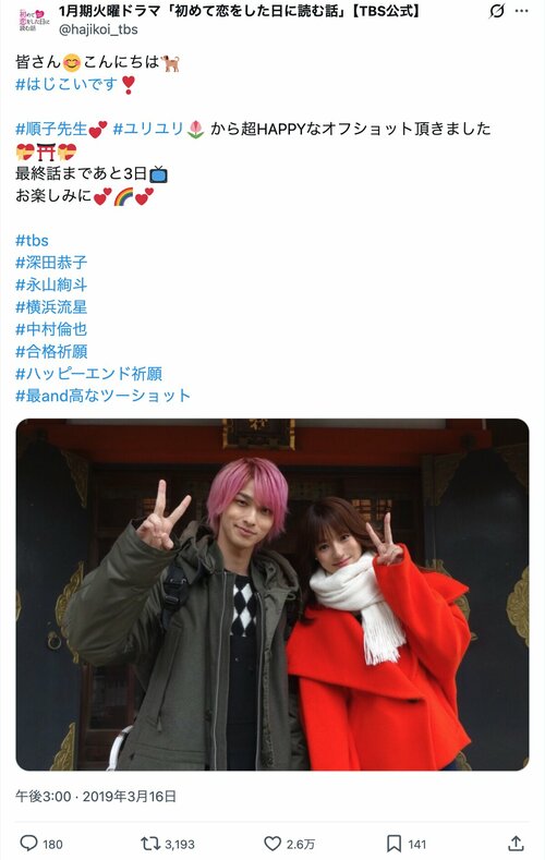 ドラマ映画 【実写化作品「可愛すぎる先生」2】深田恭子「少女のようなキュートさ」に悶絶必至!「オトナかわいい」アラサー女子『初めて恋をした日に読む話』春見順子 (2/2ページ) 1ページ目から読む #深田恭子 #実写化 #初めて恋をした日に読む話 #持田あき #横浜流星 海狸こう平 2026.04.17 ■【画像】「ほんとにカップルみたい!」寄り添う姿が色っぽい…『初めて恋をした日に読む話』深田恭子さん&横浜流星さん ※1月期火曜ドラマ「初めて恋をした日に読む話」【TBS公式】X(@hajikoi_tbs)のポストより -画像の記事に戻る- 1 2 かいりこうへい 海狸こう平 アニメ製作会社を経てフリーライターに。『コロコロコミック』『少年ジャンプ』の漫画やアニメを見て育つ。モットーは「広く浅く、ときどき潜る。」 実写化作品「可愛すぎる先生」 【実写化作品「可愛すぎる先生」1】吉岡里帆が魅せた「理想の美人教師」!清楚系ながらガチギレ姿もカッコイイ『Gメン』雨宮瞳 ポスト シェア LINEで送る