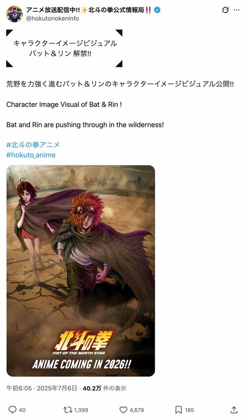 ※アニメ放送配信中!!✨北斗の拳公式情報局X(@hokutonokeninfo)のポストより
