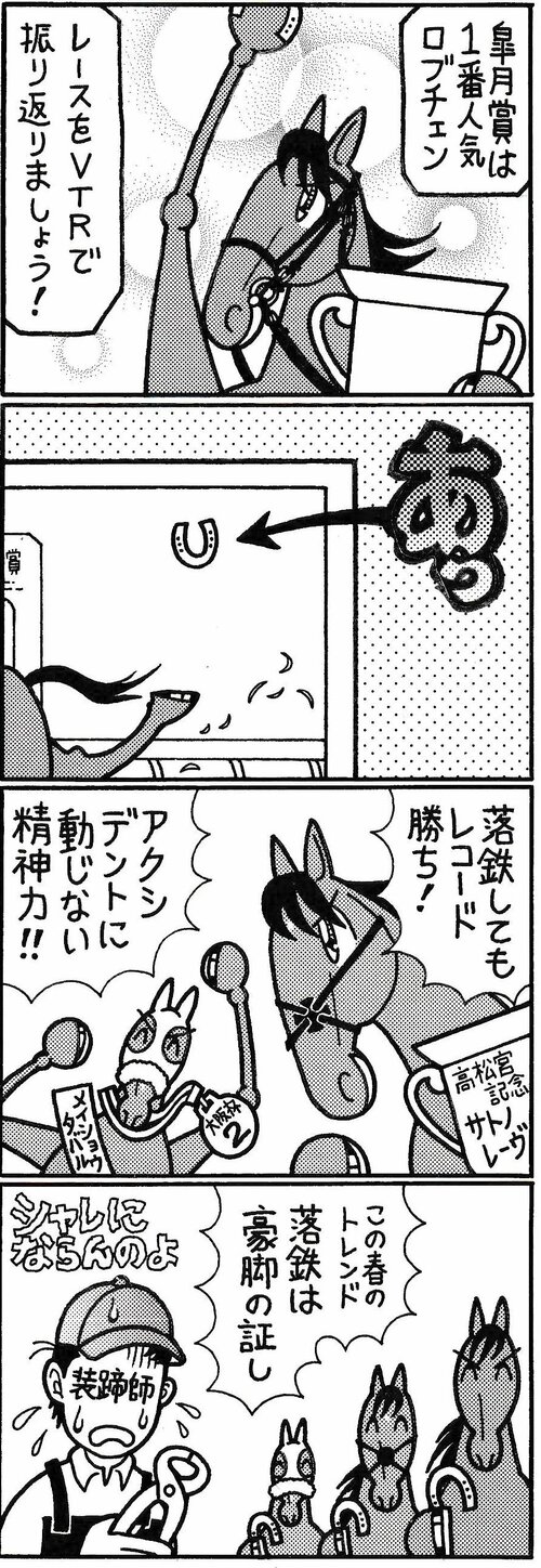 無料コミック 【無料漫画】競馬4コマ『馬なりde SHOW』地面を蹴る力がいかに強いか #よしだみほ #漫画(マンガ) #4コマ漫画 #無料漫画 よしだみほ 2026.04.24 よしだみほ よしだみほ 2019年に連載1000R&最終回を迎えた『馬なり1ハロン劇場』電子版が絶賛発売中。 netkeiba.com連載中の「馬なり1ハロン!NEO」もお楽しみください。 よしだみほ よしだみほ 馬と舞台演劇を愛する競馬マンガ家。 趣味は観劇(俳優:鹿賀丈史・滝田栄推し)&キャラ惚れベースの日本史研究。 好物はお寿司とデコポン。 ポスト シェア LINEで送る