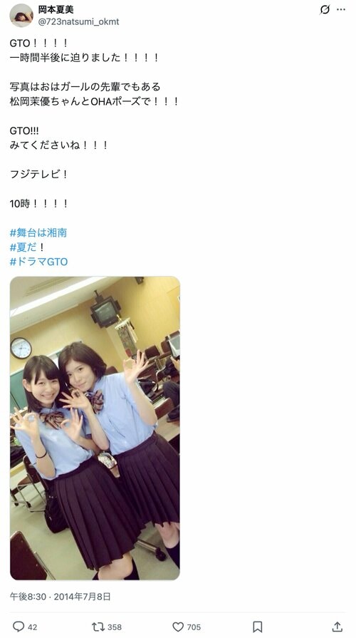 ドラマ映画 ドラマ『GTO』2014第2期、生徒役で輝いていた「人気女優」たち 小芝風花、伊藤沙莉、松岡美優…今や「主演級」の豪華共演に驚き! (3/3ページ) 1ページ目から読む #藤沢とおる #GTO #反町隆史 #EXILE #AKIRA 海狸こう平 2026.04.29 ■【画像3枚】「制服姿がめちゃめちゃ可愛い!」『GTO』第2期に出演した小芝風花さん、伊藤沙莉さん、松岡美優さん 『GTO』出演時の小芝風花さん ※GENERATIONS公式X(@generationsfext)のポストより 『GTO』出演時の伊藤沙莉さん ※伊藤沙莉公式X(@SaiRi_iTo)のポストより 『GTO』出演時の松岡茉優さん ※岡本夏美公式X(@723natsumi_okmt )のポストより -画像の記事に戻る- 1 2 3 かいりこうへい 海狸こう平 大学卒業後、エンタメ業界に身を置き、アニメ制作の現場にも8年以上携わる。 現場で培った知識と視点を活かし、現在はライターとしても活動。これまでに執筆した記事は500本を超える。 人生のバイブルである『ドラゴンボール』や『SLAM DUNK』、特撮の『仮面ライダー』シリーズを筆頭に幅広いジャンルを愛好。 作品への愛を武器に、多角的な視点から丁寧に読み解く考察を信条としている。 ポスト シェア LINEで送る